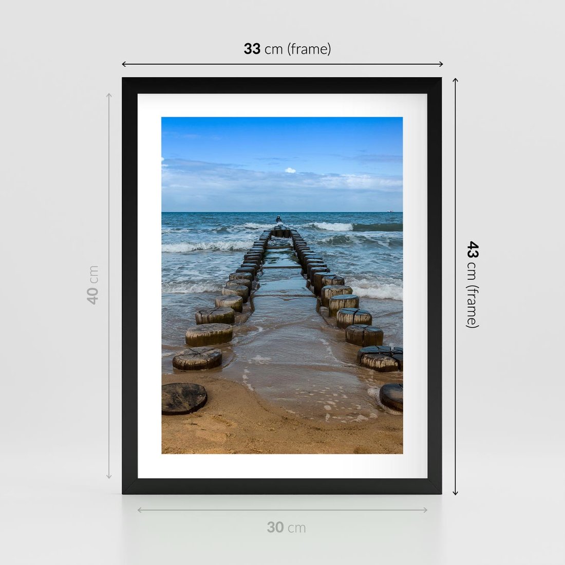 - Plakat w ramie 30x40 - Falochron na brzegu morza