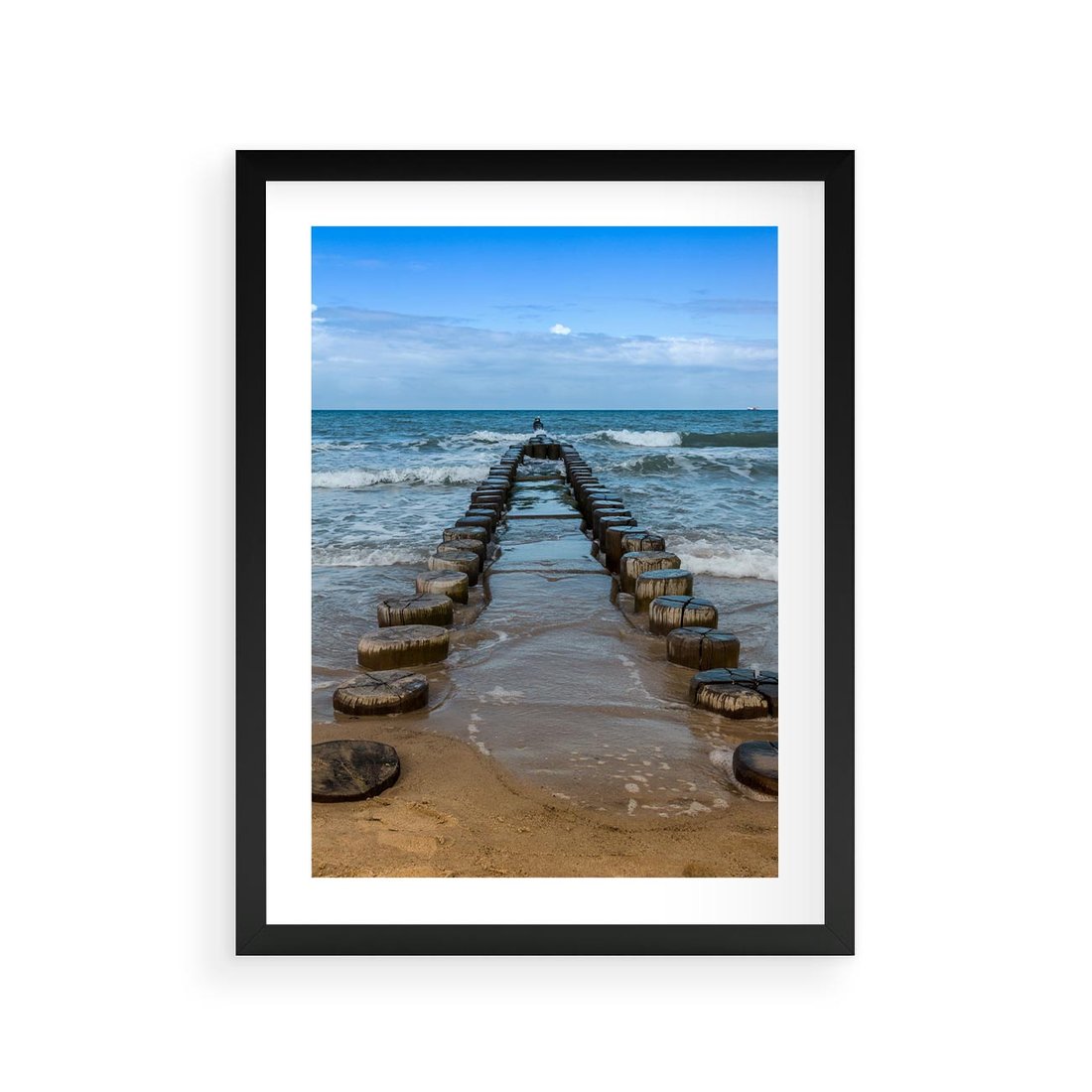 Plakat w ramie 30x40 - Falochron na brzegu morza - falochron, morze - rama czarna