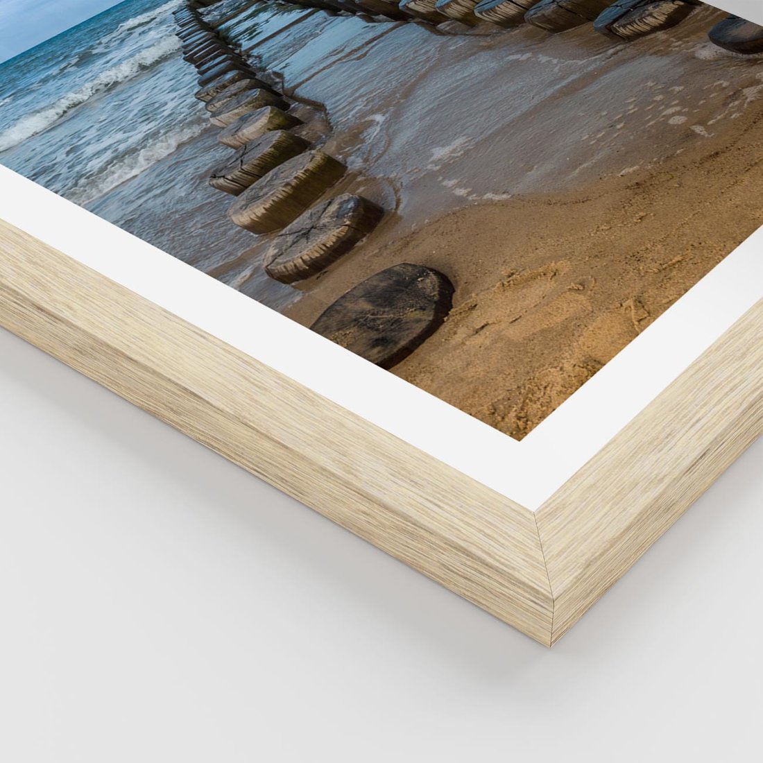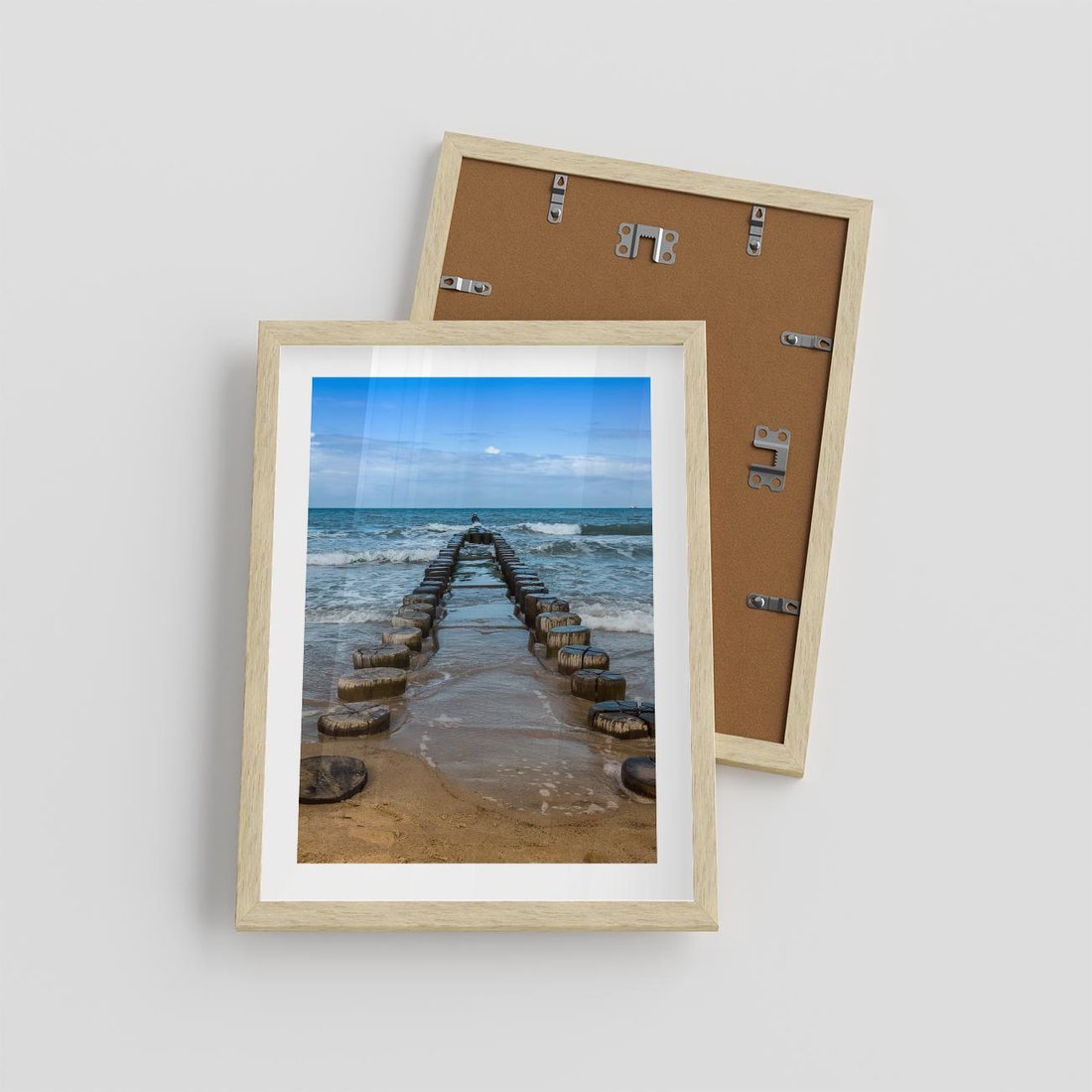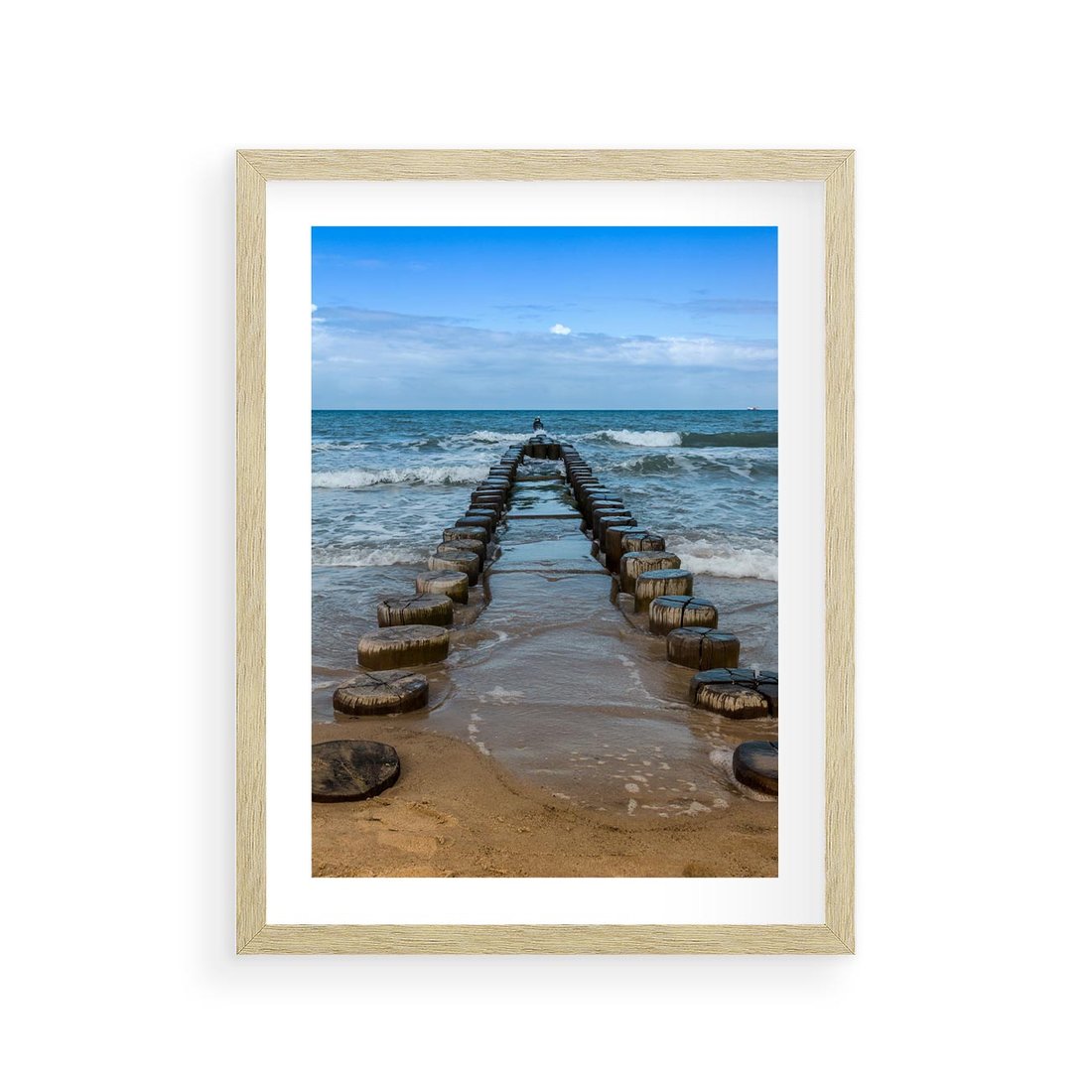 Plakat w ramie 30x40 - Falochron na brzegu morza - falochron, morze - rama drewno