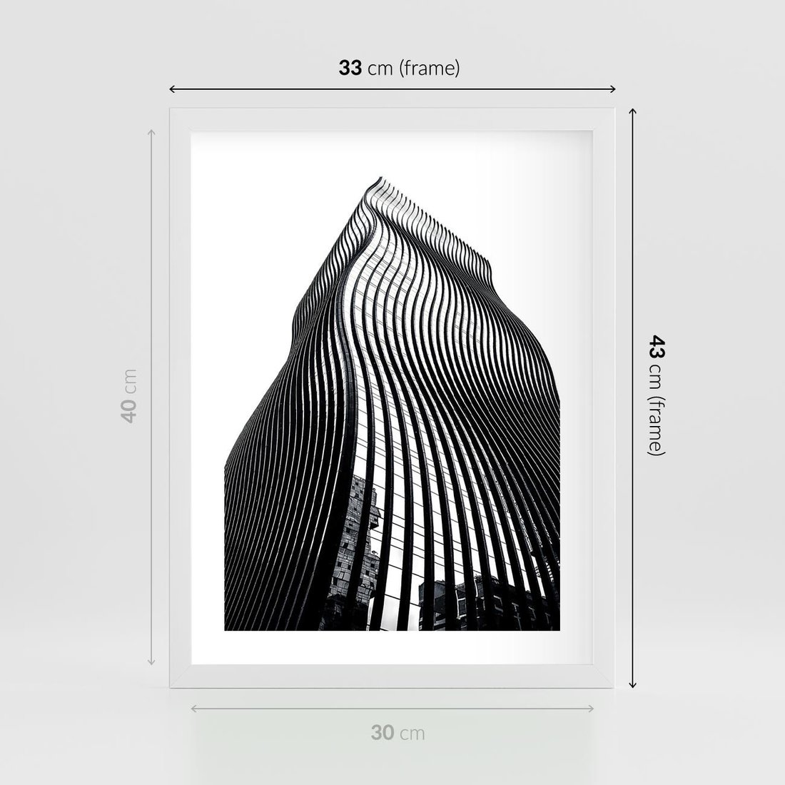 Plakat w ramie 30x40 - Falowany Wieżowiec na Fotografii - architektura, falowany wieżowiec - rama biała