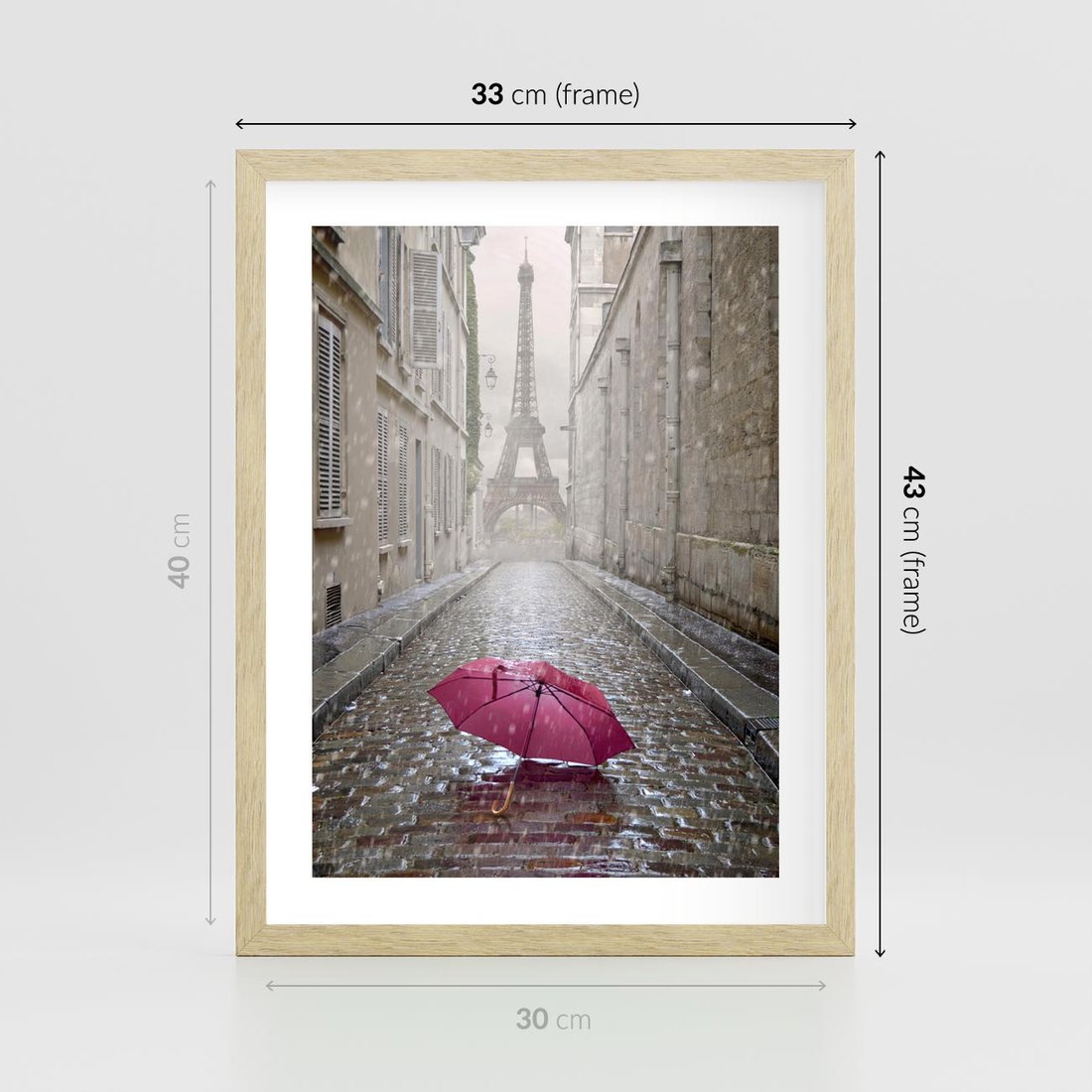 Plakat w ramie 30x40 - Francuska elegancja pod parasolem - Francja, parasol - rama drewno
