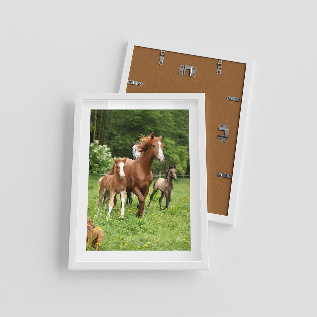 Plakat w ramie 30x40 - Galopujące konie - konie, galop - rama biała