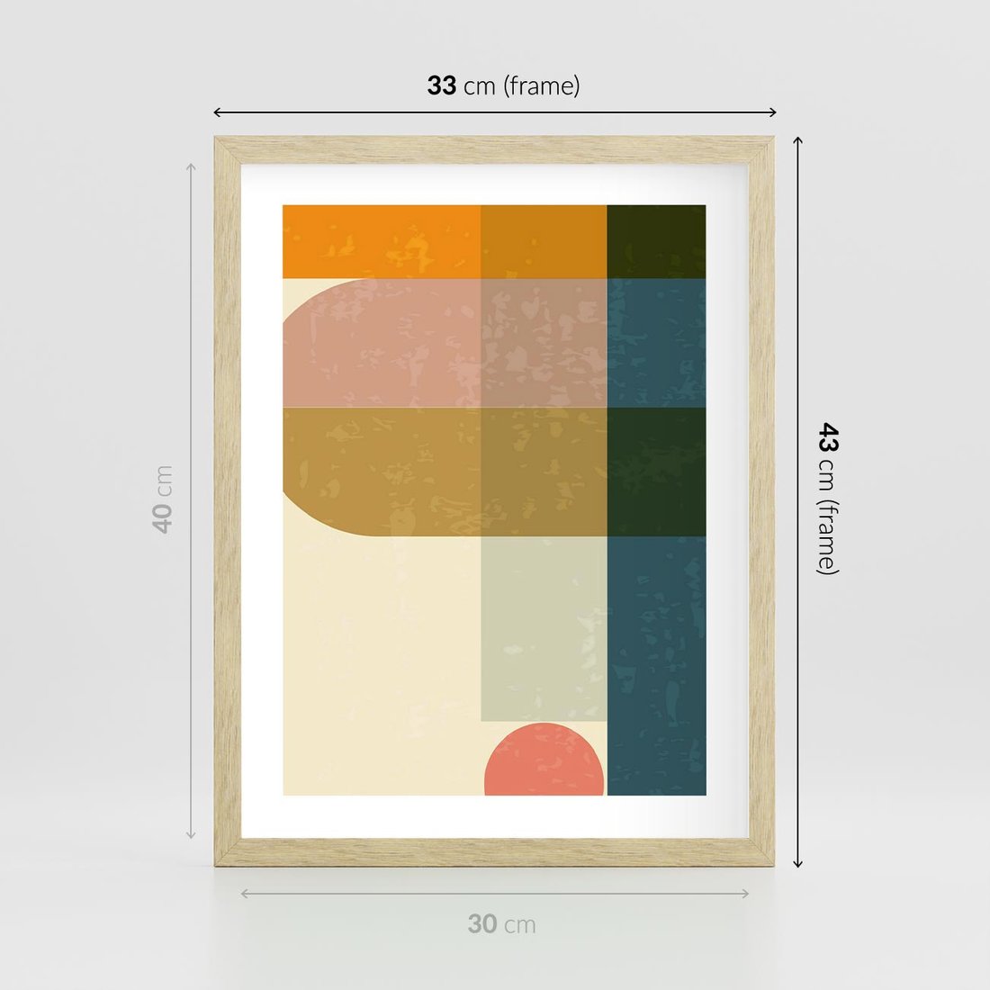 Plakat w ramie 30x40 - Geometryczna Grafika na Plakacie - geometryczna nowoczesna grafika, minimalizm - rama drewno