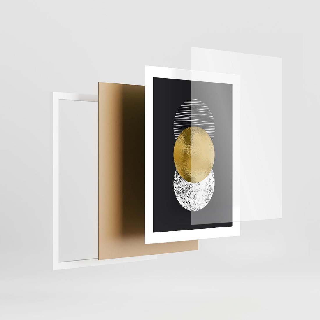 To geometryczna grafika, w której dominuje złote koło. Grafika ta łączy w sobie abstrakcję i geometrię, tworząc harmonijną kompozycję.
