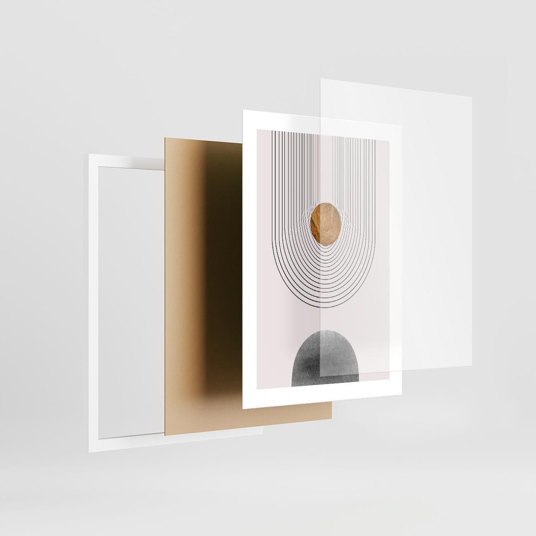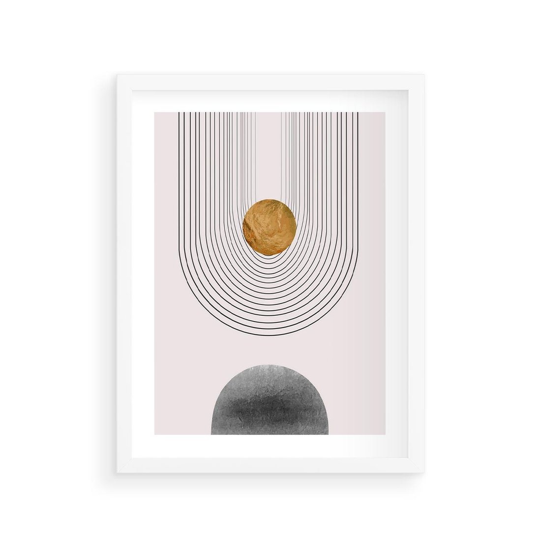 Nasza nowoczesna grafika to połączenie minimalistycznego designu i luksusowej elegancji. Ta kompozycja przedstawia abstrakcyjne formy geometryczne w złocistych odcieniach, co tworzy wyjątkowy i nowoczesny obraz. To idealna dekoracja, aby dodać swojemu wnętrzu luksusowego wyrazu i nowoczesnego charakteru.