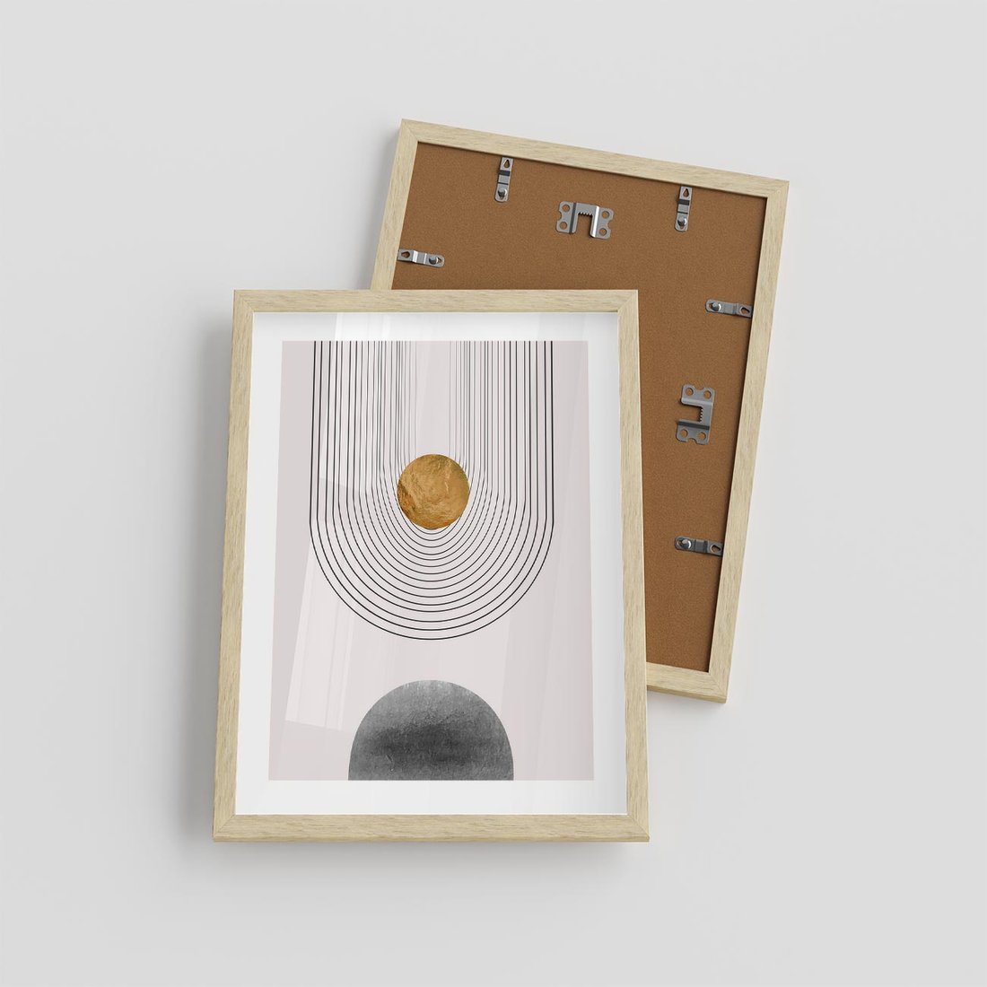 Nasza nowoczesna grafika to połączenie minimalistycznego designu i luksusowej elegancji. Ta kompozycja przedstawia abstrakcyjne formy geometryczne w złocistych odcieniach, co tworzy wyjątkowy i nowoczesny obraz. To idealna dekoracja, aby dodać swojemu wnętrzu luksusowego wyrazu i nowoczesnego charakteru.