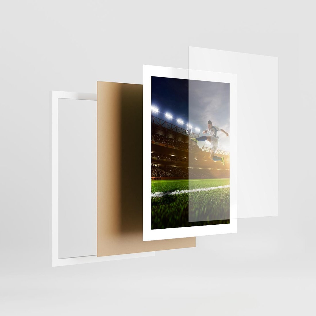 Plakat w ramie 30x40 - Gol! Magia piłki nożnej - gol, piłka - rama biała