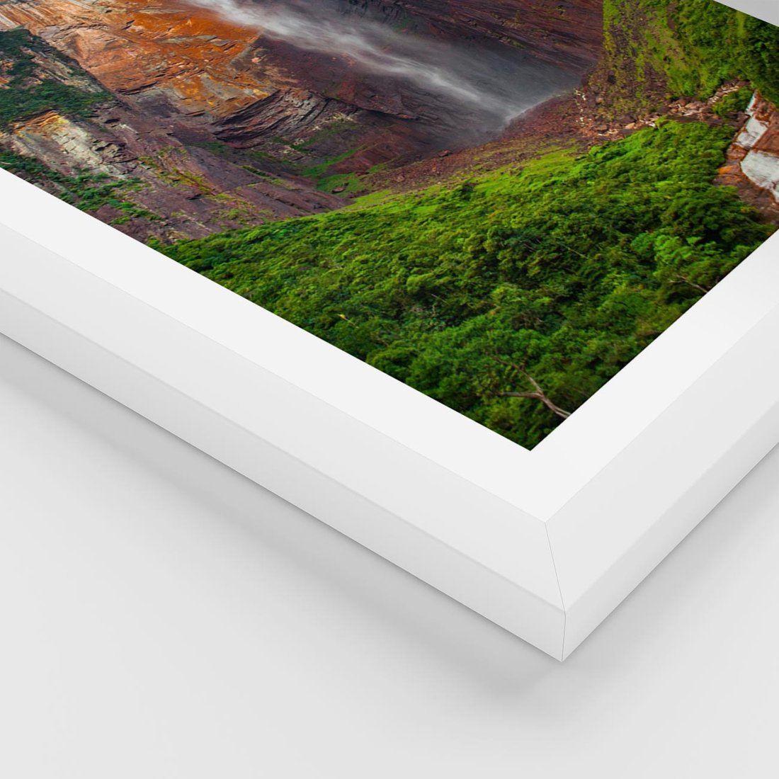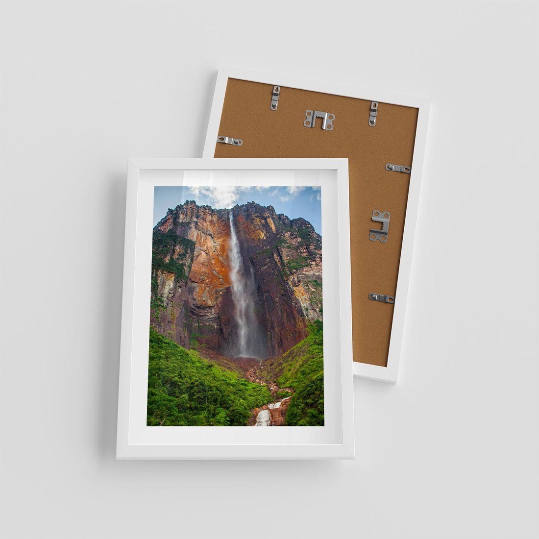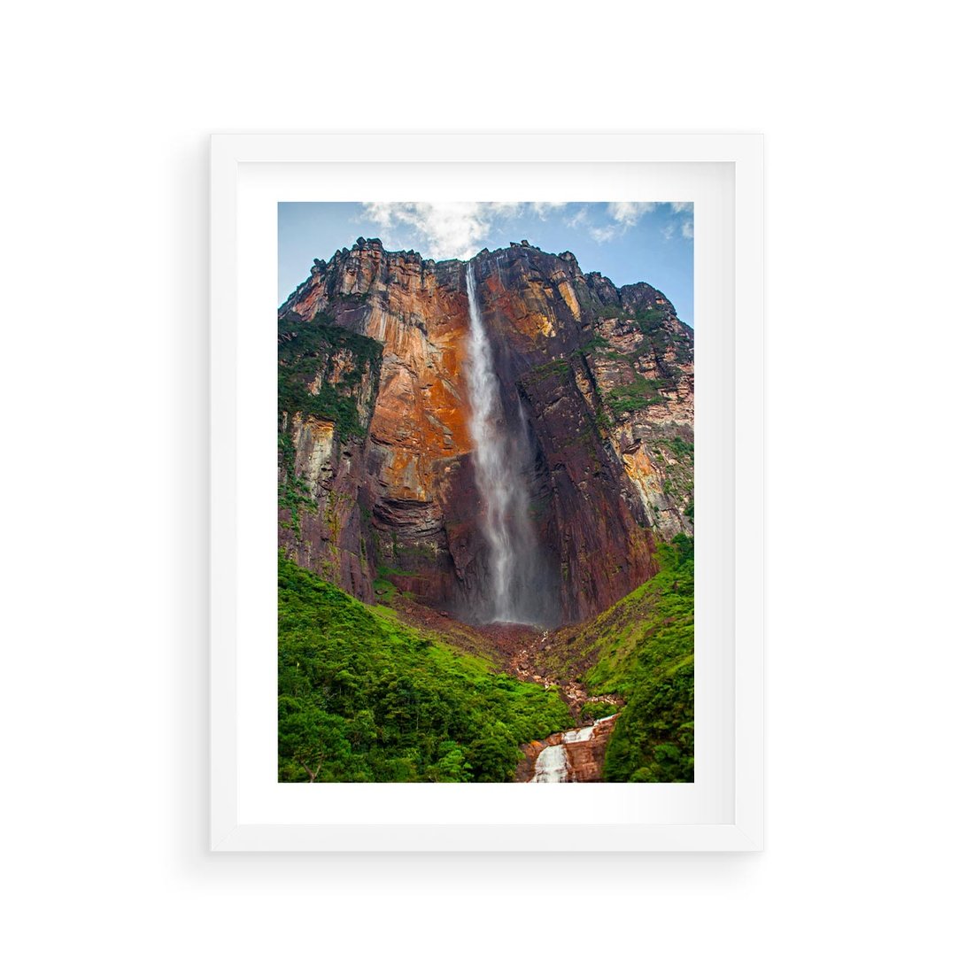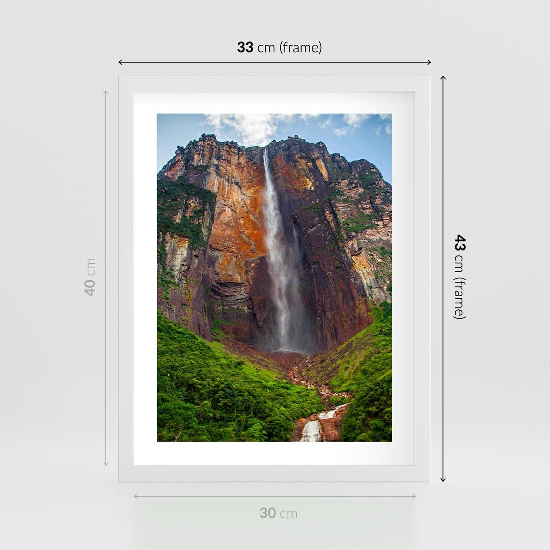 Plakat w ramie 30x40 - Górska siła wodospadów - wodospad, góra - rama biała