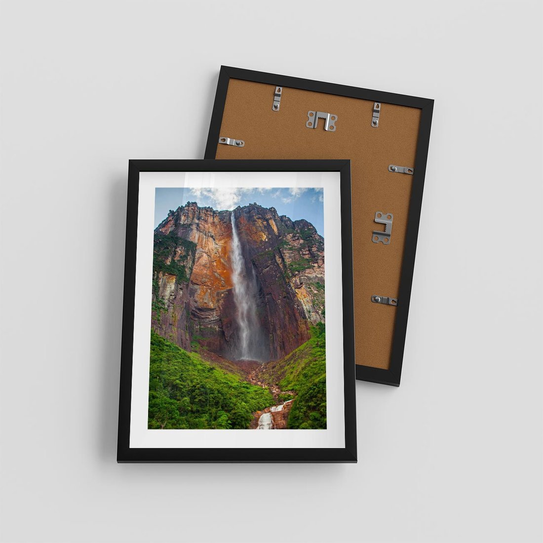 Plakat w ramie 30x40 - Górska siła wodospadów - wodospad, góra - rama czarna