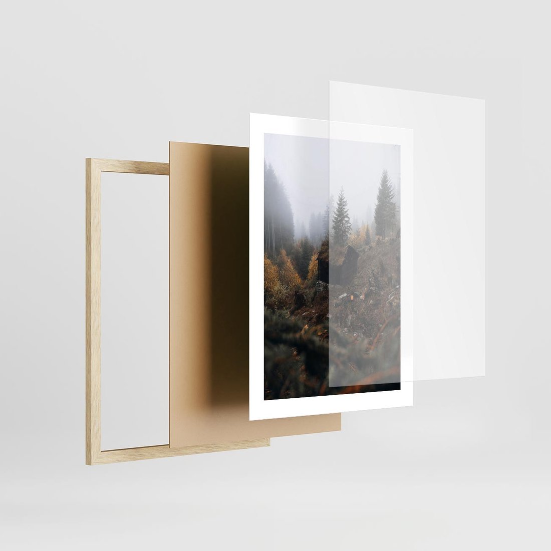 Górski las ukazuje się na obrazie jako mistyczne skupisko drzew, gdzie światło słoneczne filtrowane przez liście tworzy tkaninę cienia i światła. Konary drzew iglastych ukazują się w blasku słońca, a powietrze jest nasycone zapachem świeżości i spokoju, zachęcając do odprężenia w otoczeniu przyrody.