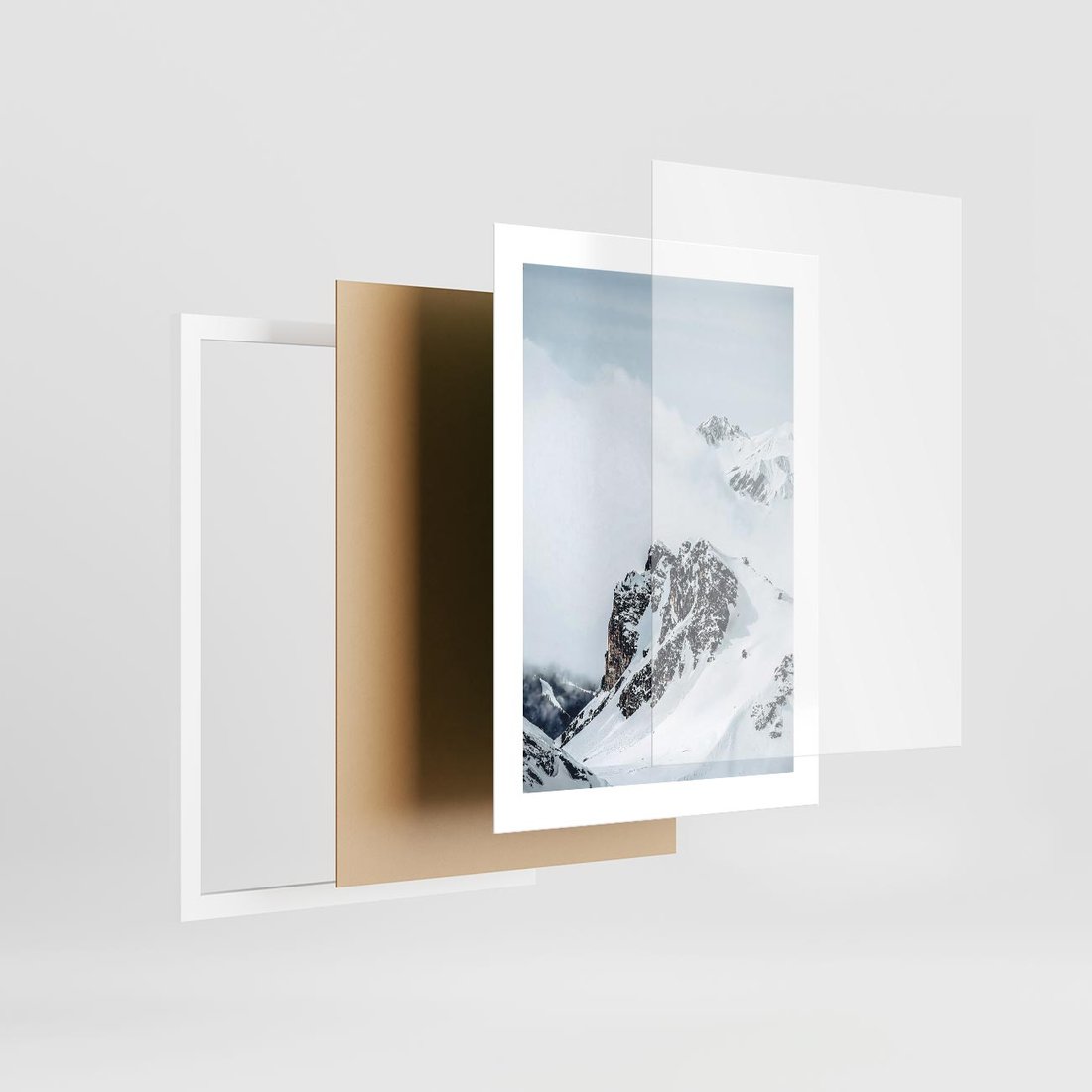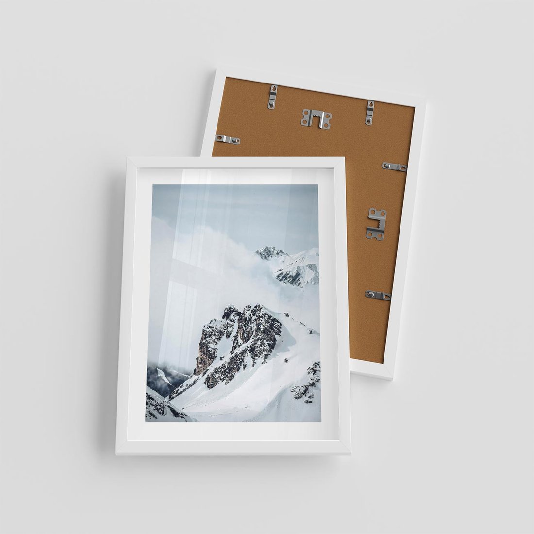 Plakat w ramie 30x40 - Górski Majestat - górskie szczyty pod śniegiem, górski krajobraz - rama biała