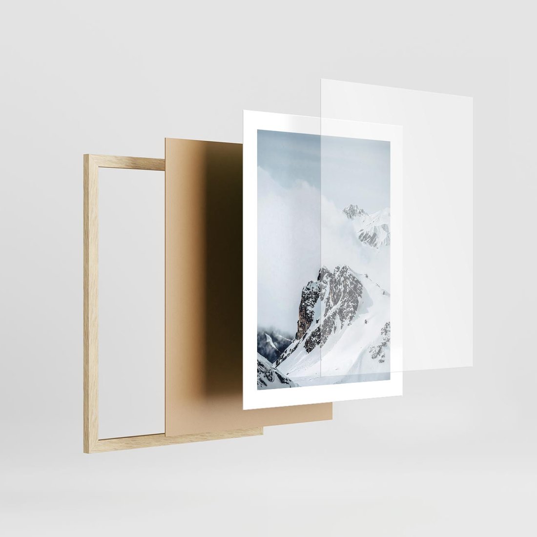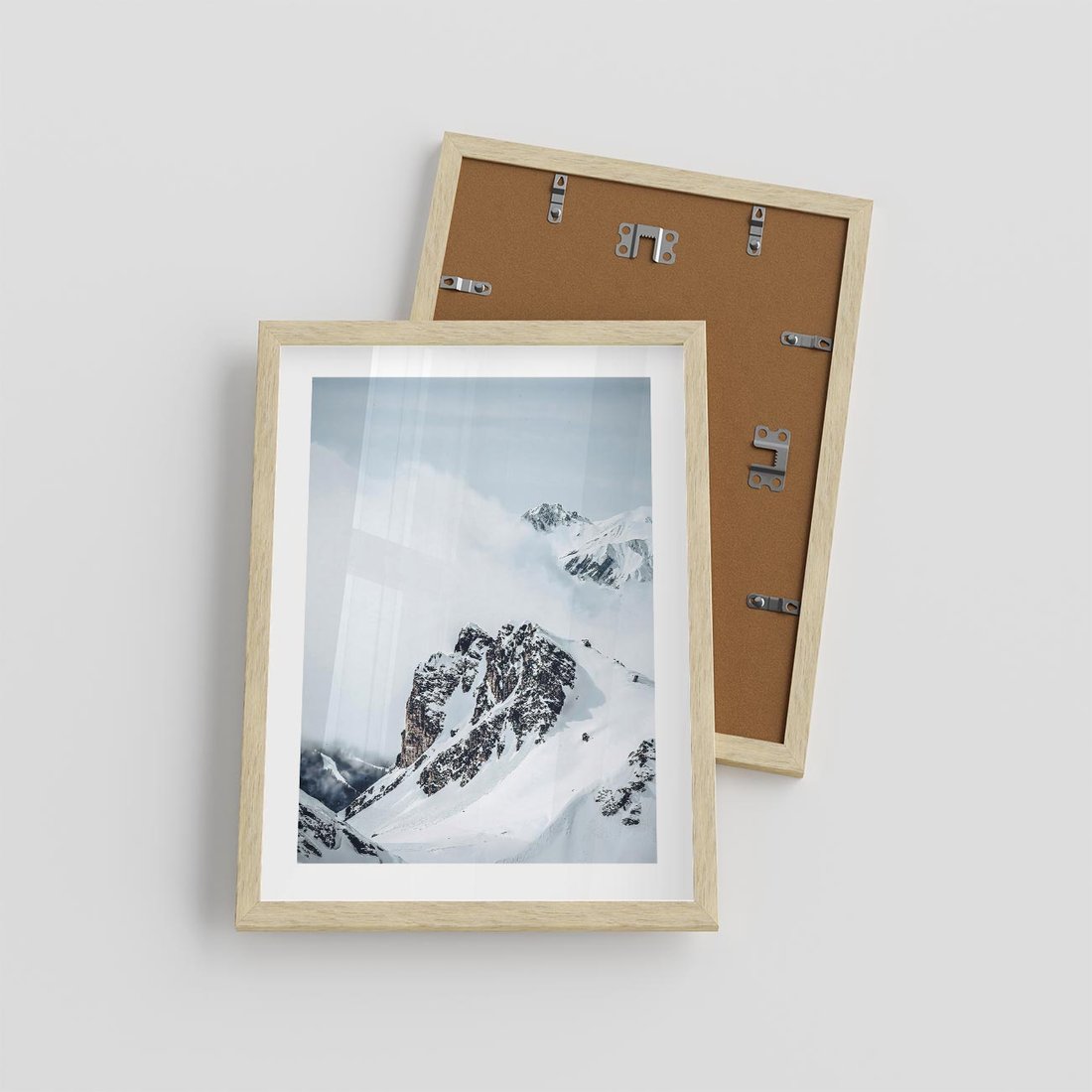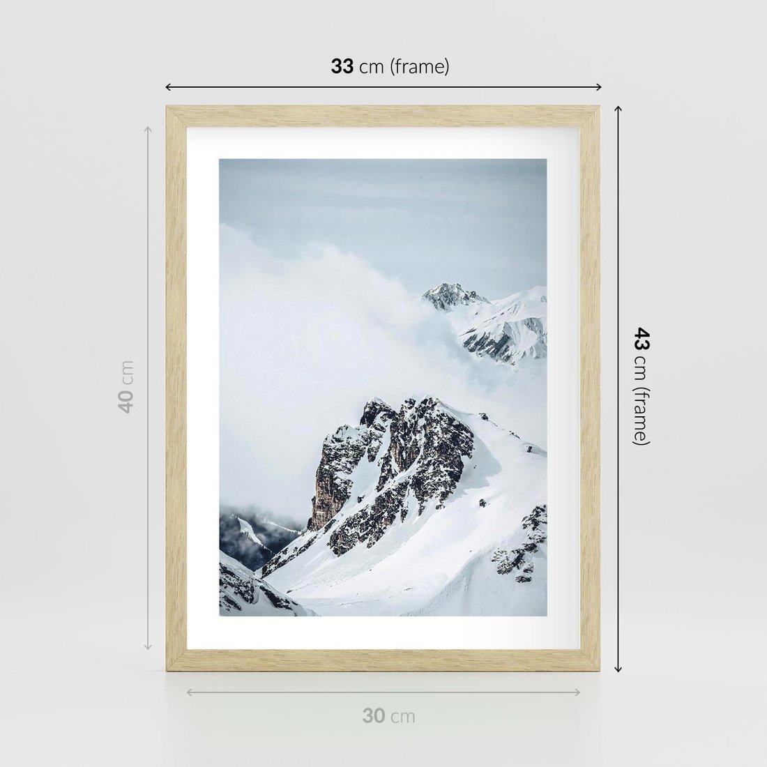 Plakat w ramie 30x40 - Górski Majestat - górskie szczyty pod śniegiem, górski krajobraz - rama drewno
