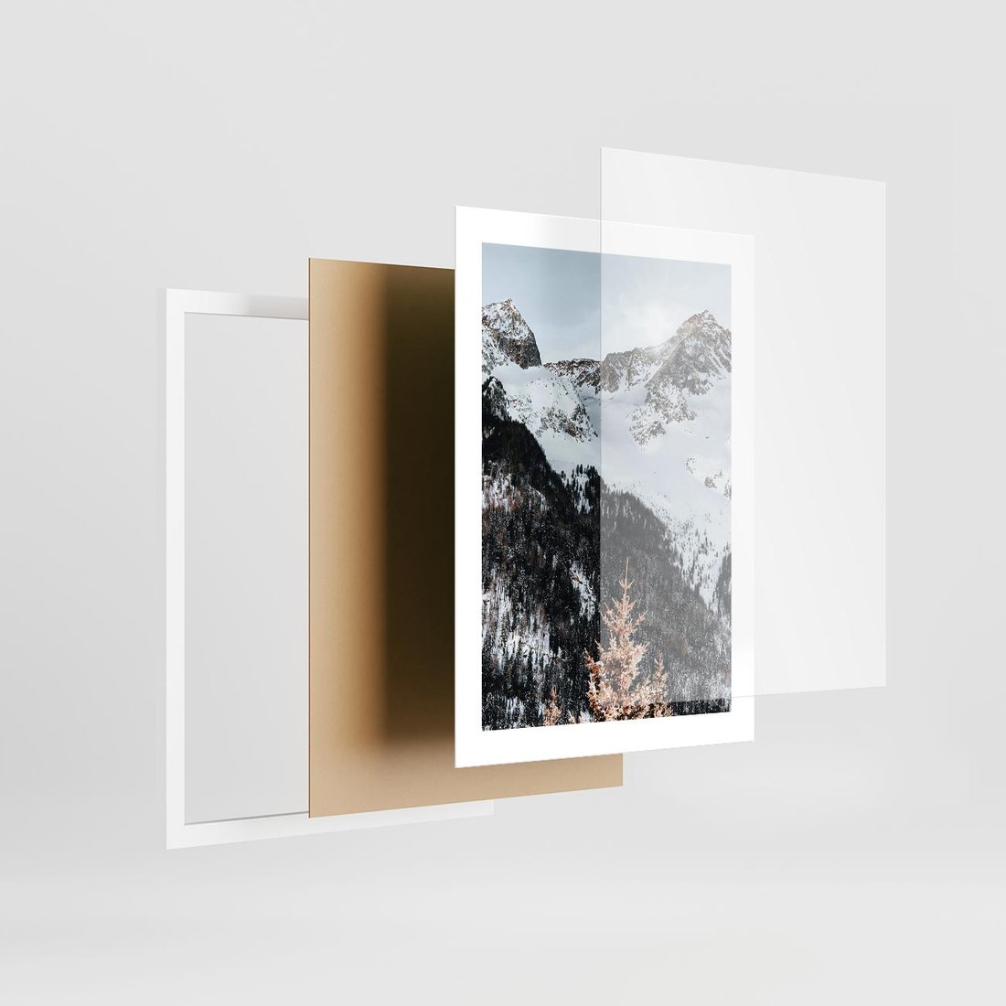 To malowniczy pejzaż górski, gdzie masywne góry pokryte są białym śniegiem, tworząc urokliwy i majestatyczny krajobraz. Obraz doskonale pasuje do wnętrz o charakterze przyrodniczym, rustykalnym lub skandynawskim, nadając im spokój i inspirację naturą.