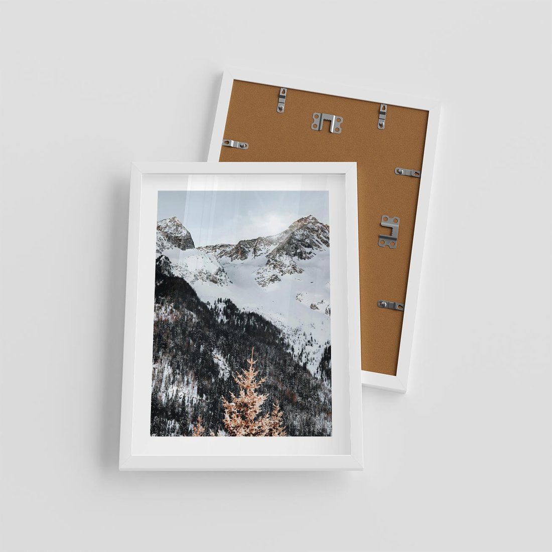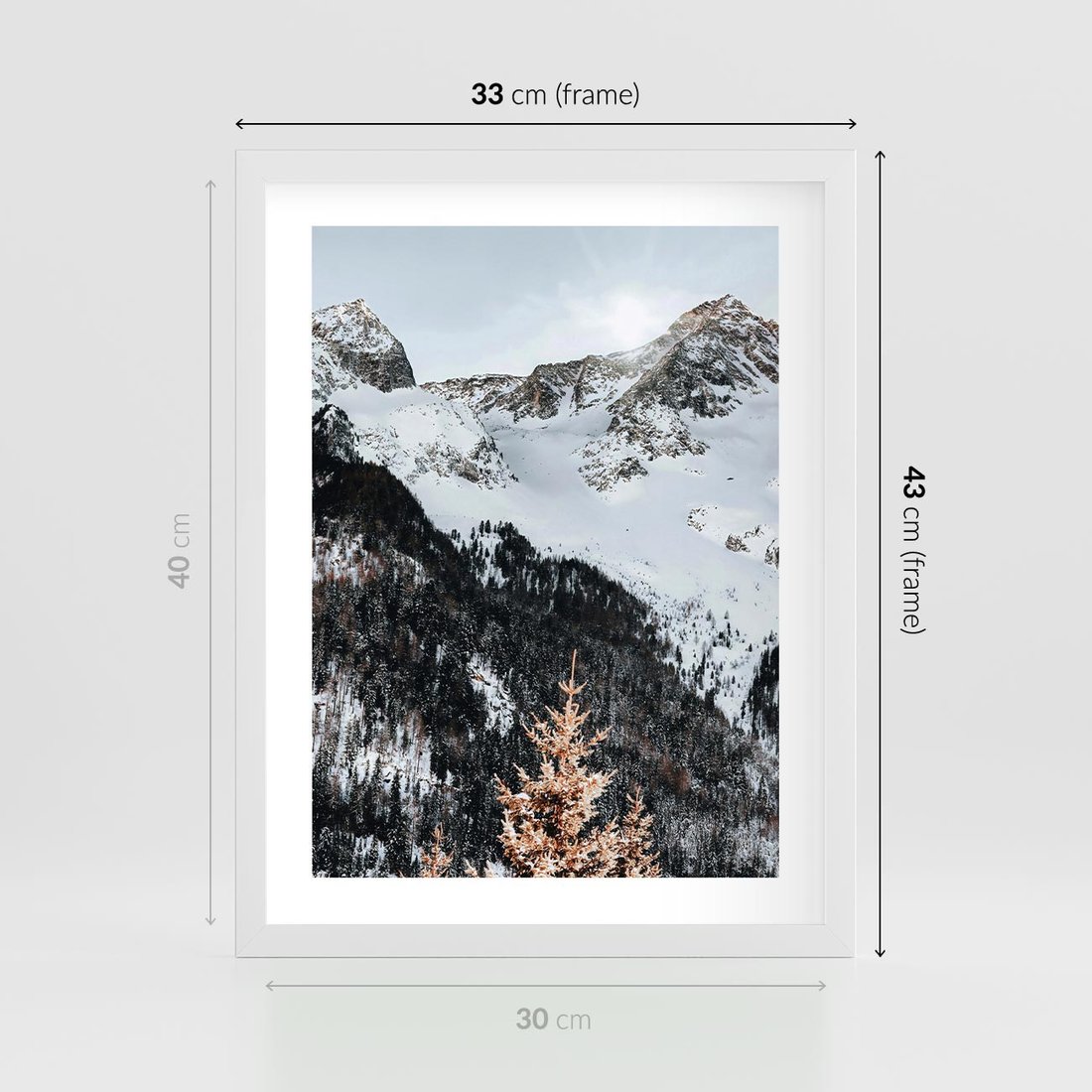 Plakat w ramie 30x40 - Górski Raj - góry, śnieg - rama biała