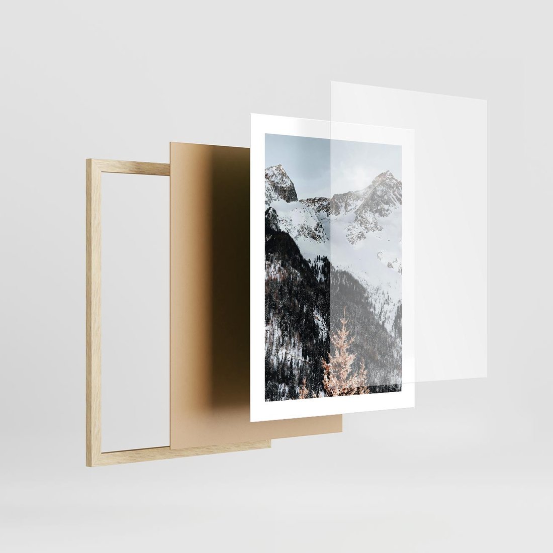 To malowniczy pejzaż górski, gdzie masywne góry pokryte są białym śniegiem, tworząc urokliwy i majestatyczny krajobraz. Obraz doskonale pasuje do wnętrz o charakterze przyrodniczym, rustykalnym lub skandynawskim, nadając im spokój i inspirację naturą.