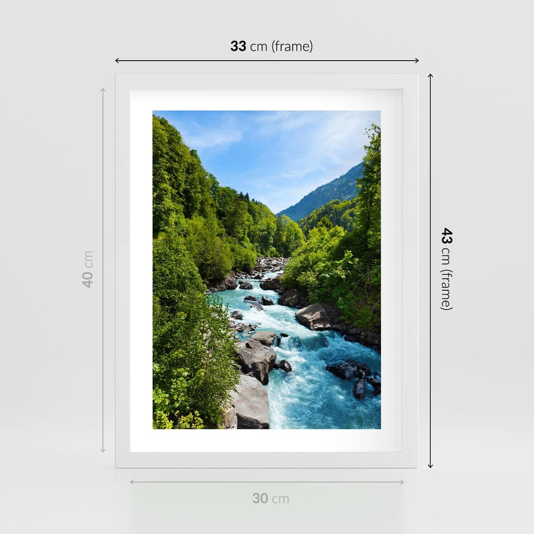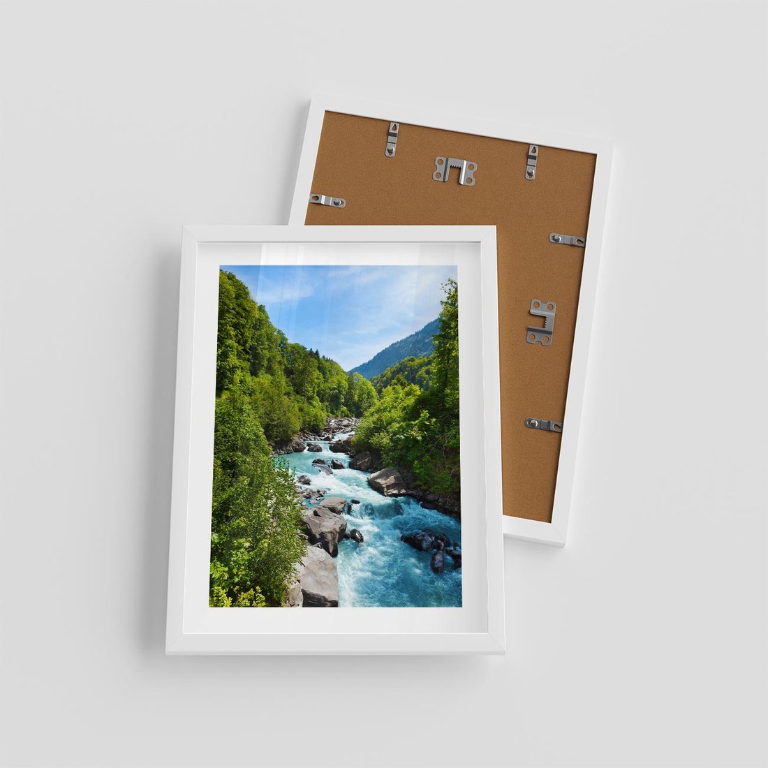 Plakat w ramie 30x40 - Górski strumyk - strumyk, góry - rama biała