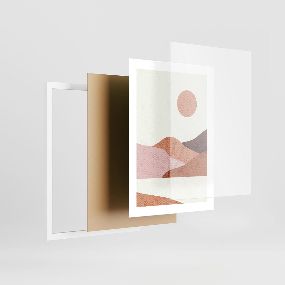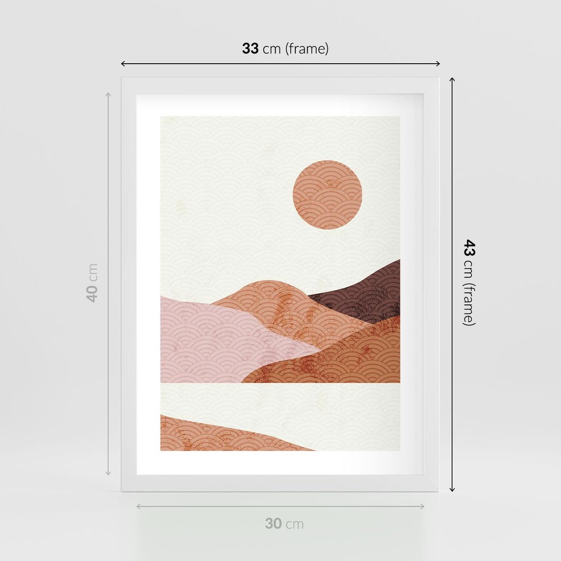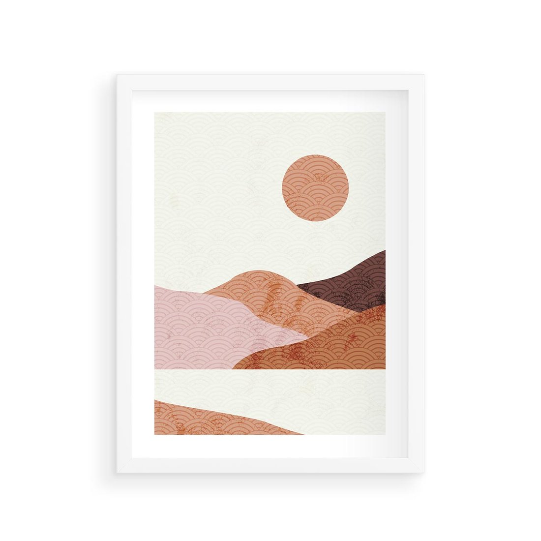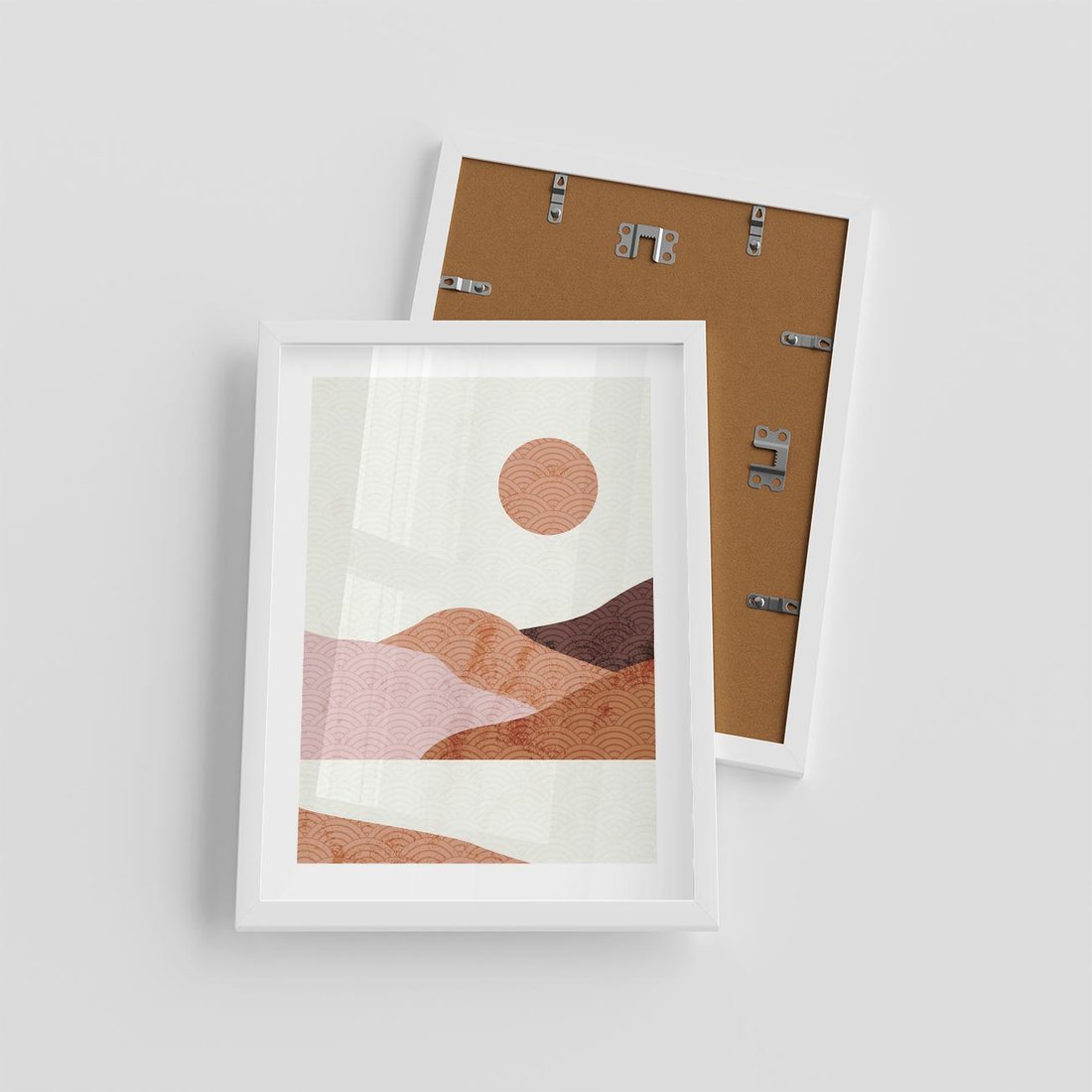Ten plakat to odzwierciedlenie nowoczesnej sztuki poprzez minimalistyczny wydźwięk. Przedstawia góry w stonowanych beżowo-brązowych odcieniach, co wprowadza do Twojej przestrzeni spokój i wyrafinowanie natury, zachowując przy tym prostotę minimalistycznego stylu.