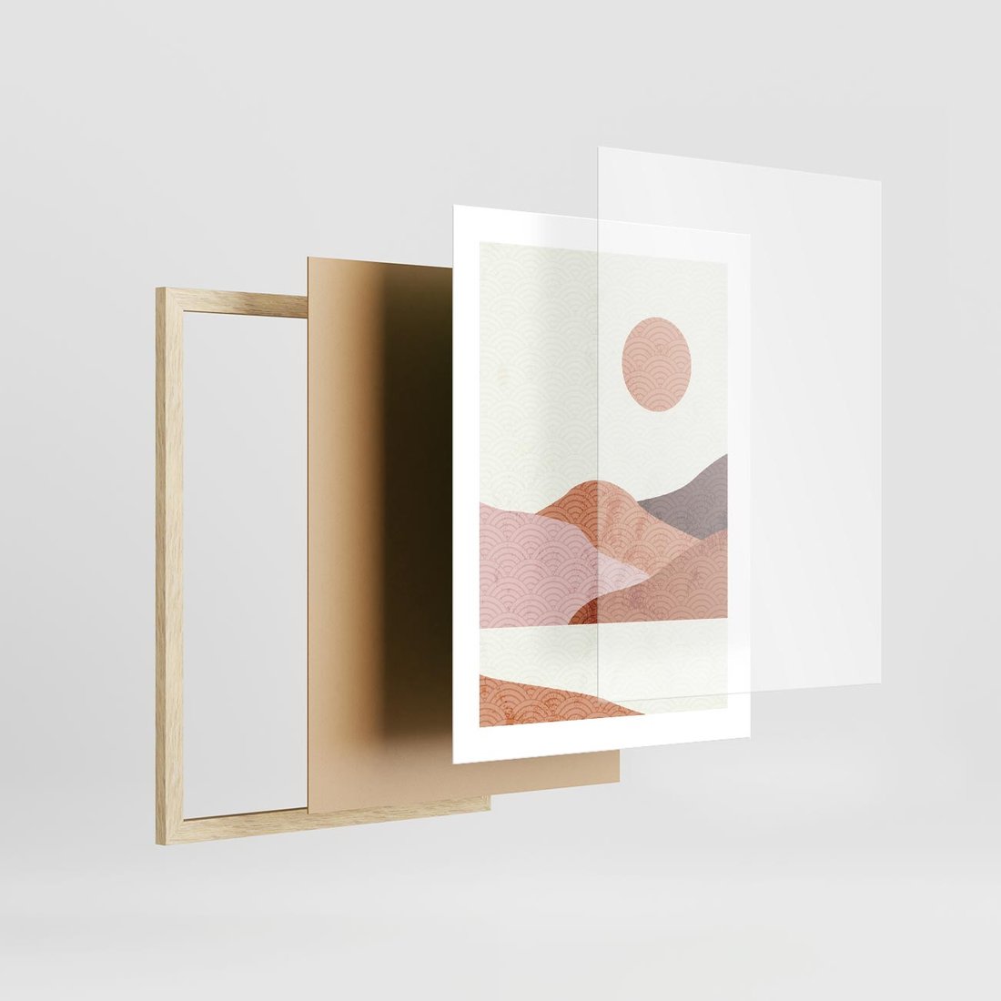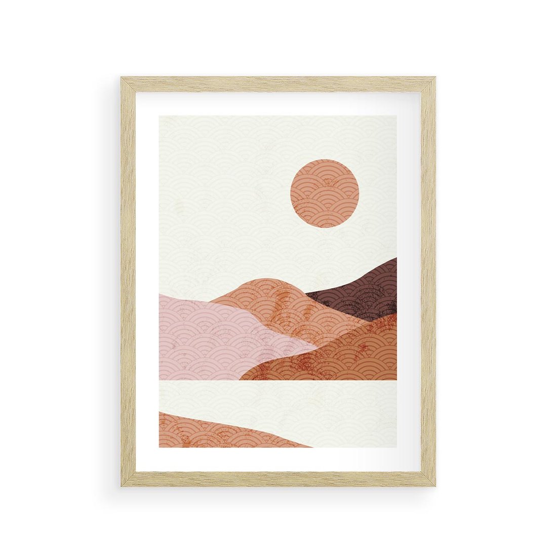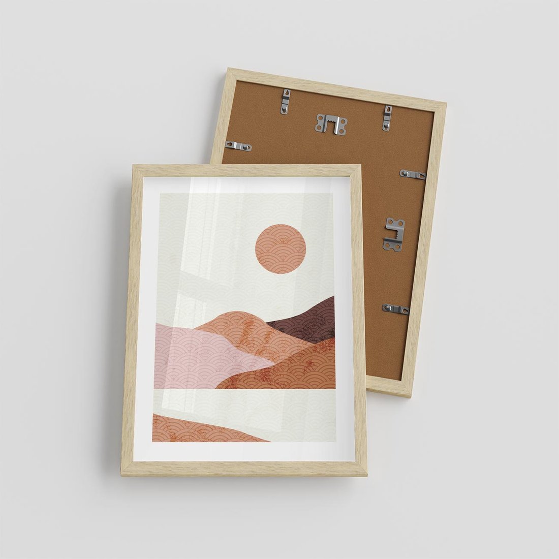 Ten plakat to odzwierciedlenie nowoczesnej sztuki poprzez minimalistyczny wydźwięk. Przedstawia góry w stonowanych beżowo-brązowych odcieniach, co wprowadza do Twojej przestrzeni spokój i wyrafinowanie natury, zachowując przy tym prostotę minimalistycznego stylu.