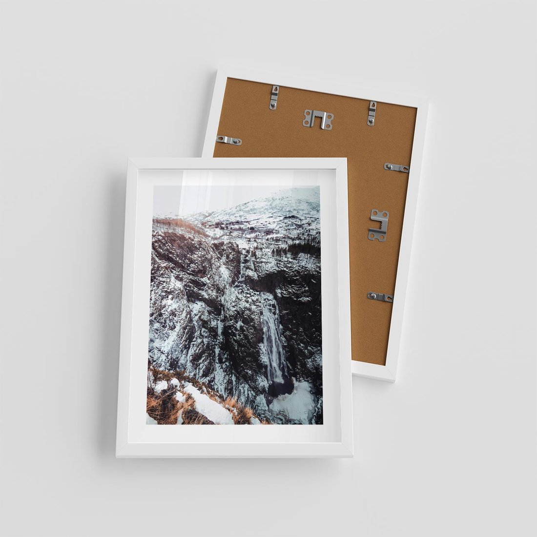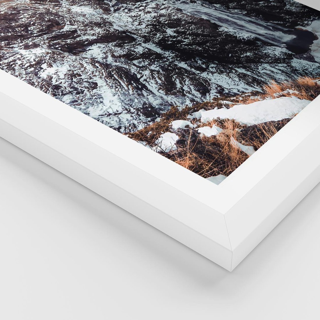 Plakat w ramie 30x40 - Góry w Białym Uroku: Zimowa Sceneria - górski krajobraz, zima - rama biała
