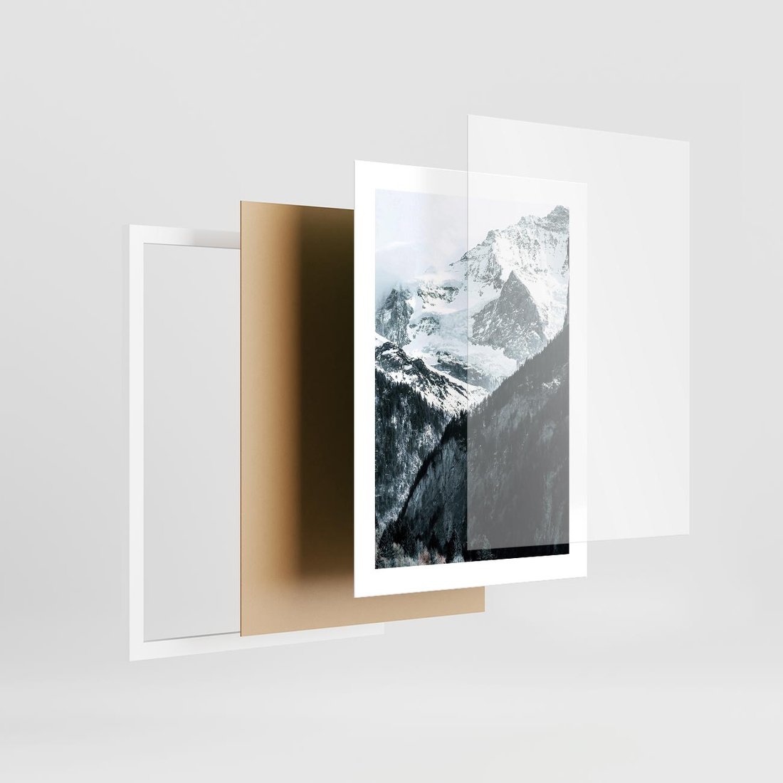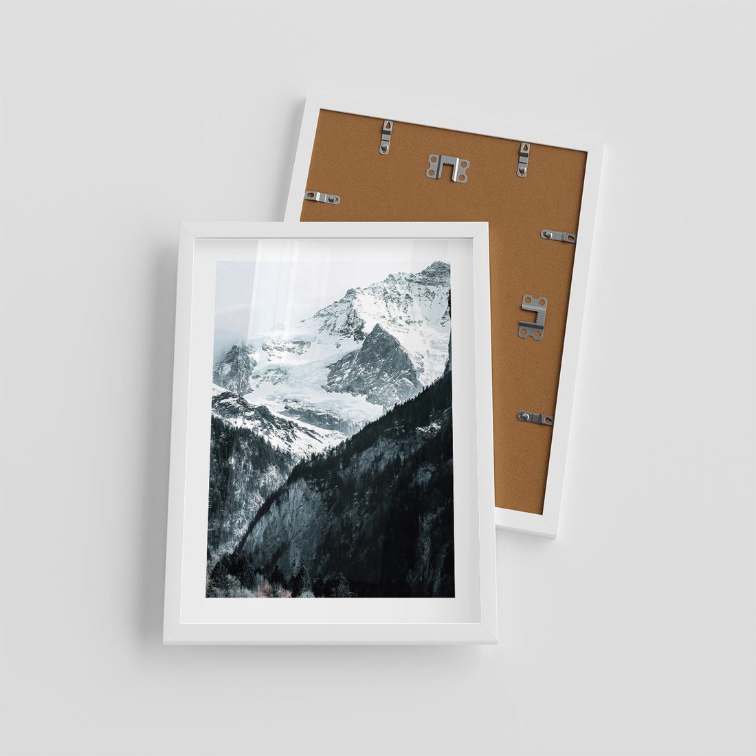 Plakat w ramie 30x40 - Góry w Zimowym Uścisku - góry, ośnieżone szczyty - rama biała