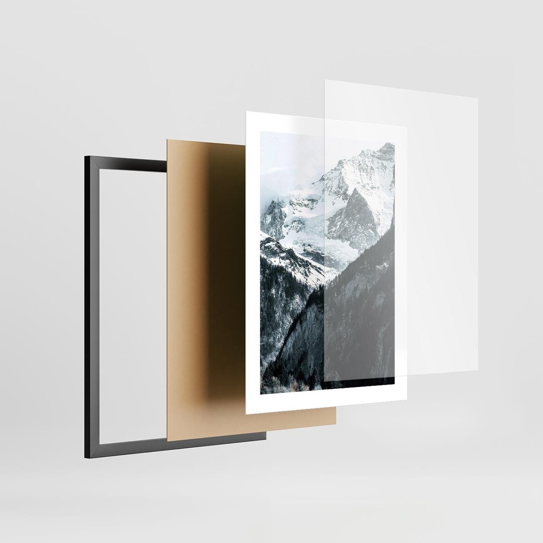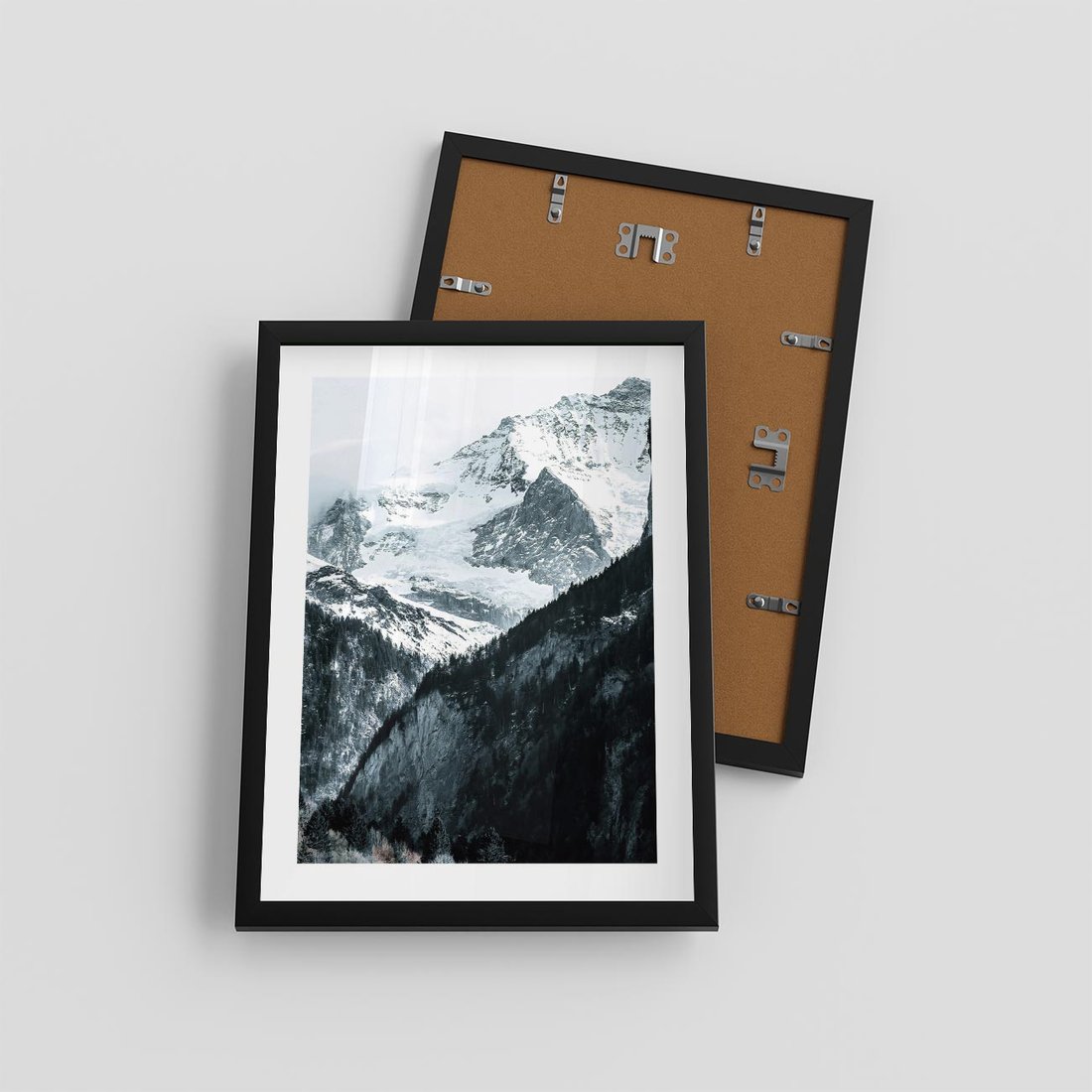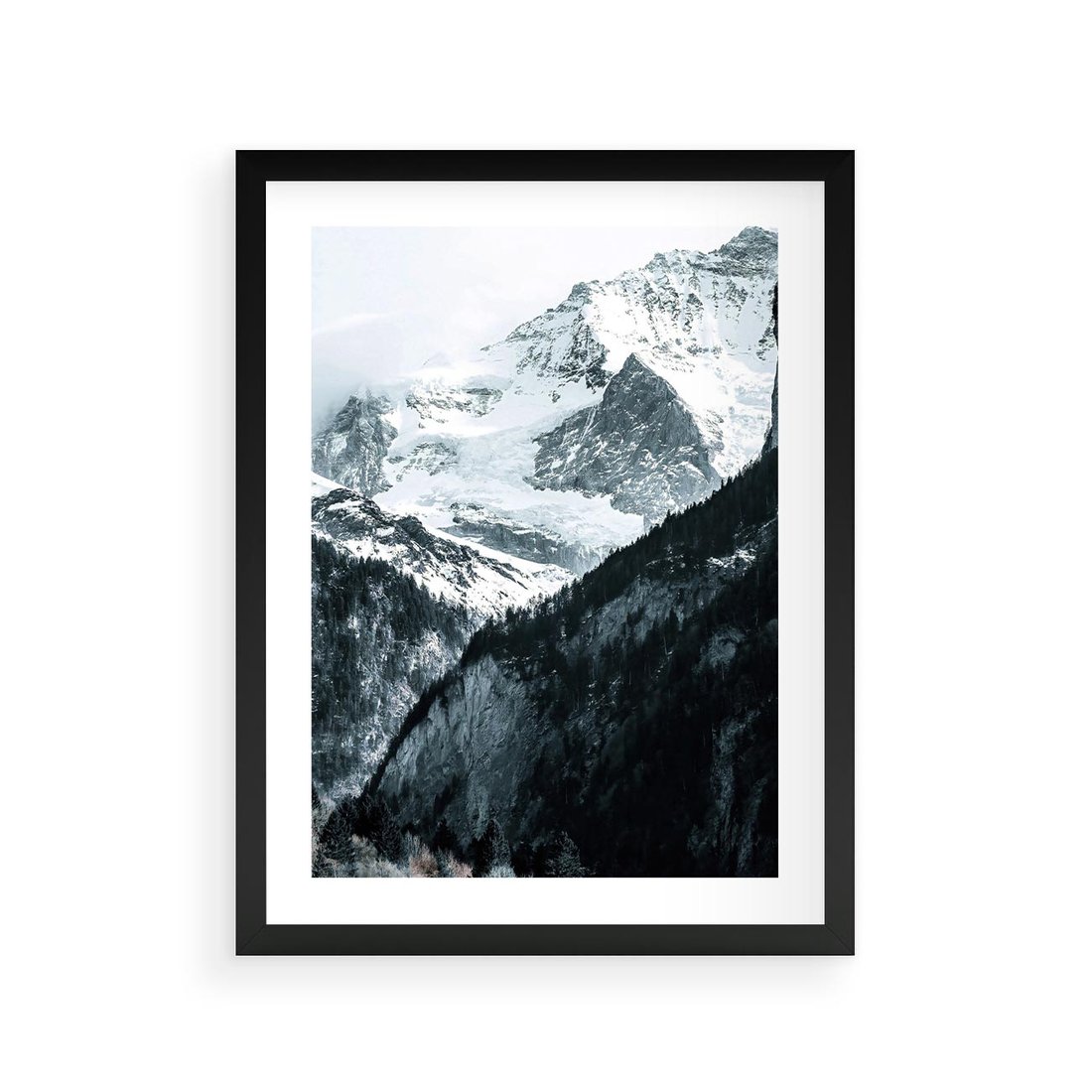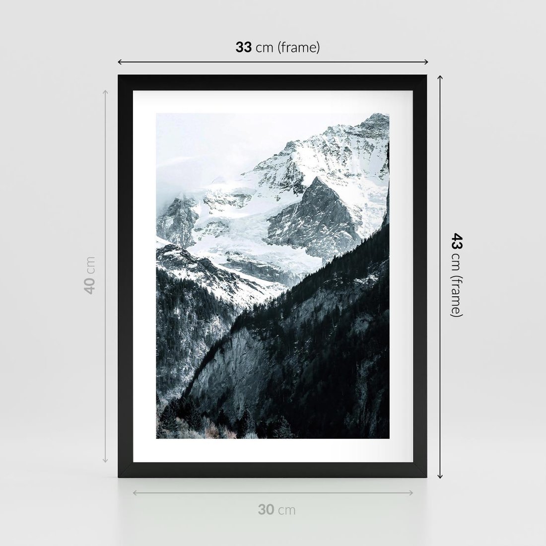 Plakat w ramie 30x40 - Góry w Zimowym Uścisku - góry, ośnieżone szczyty - rama czarna