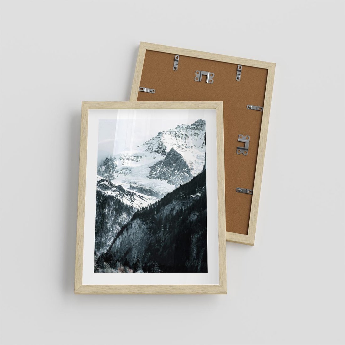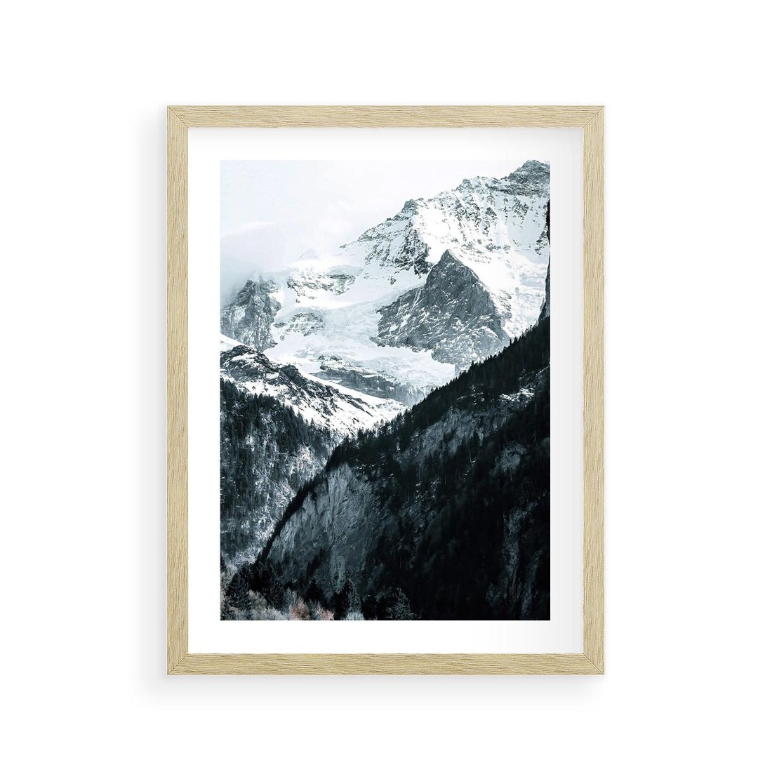 Plakat w ramie 30x40 - Góry w Zimowym Uścisku - góry, ośnieżone szczyty - rama drewno