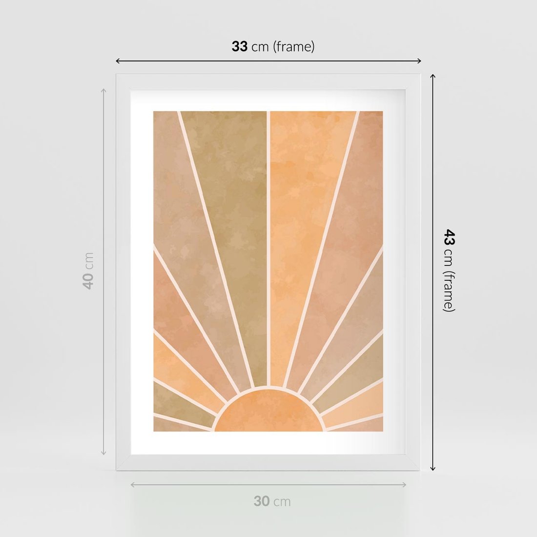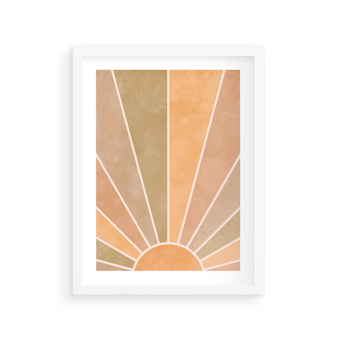Plakat w ramie 30x40 - Grafika Boho w Odcieniach Pomarańczu - boho słońce, grafika - rama biała