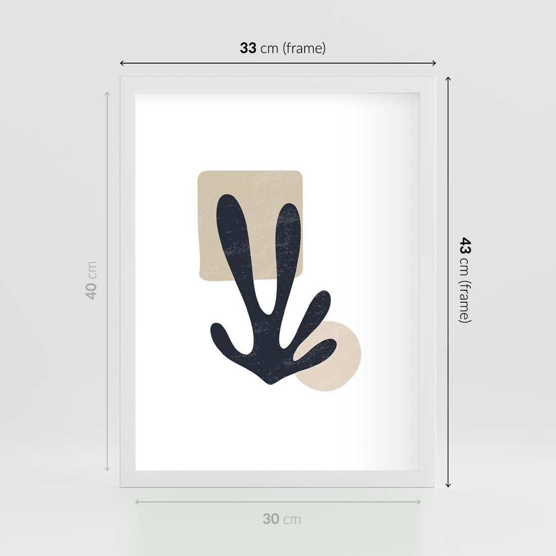 Plakat w ramie 30x40 - Granatowa Odsłona - minimalistyczna nowczesna grafika, styl matisse - rama biała