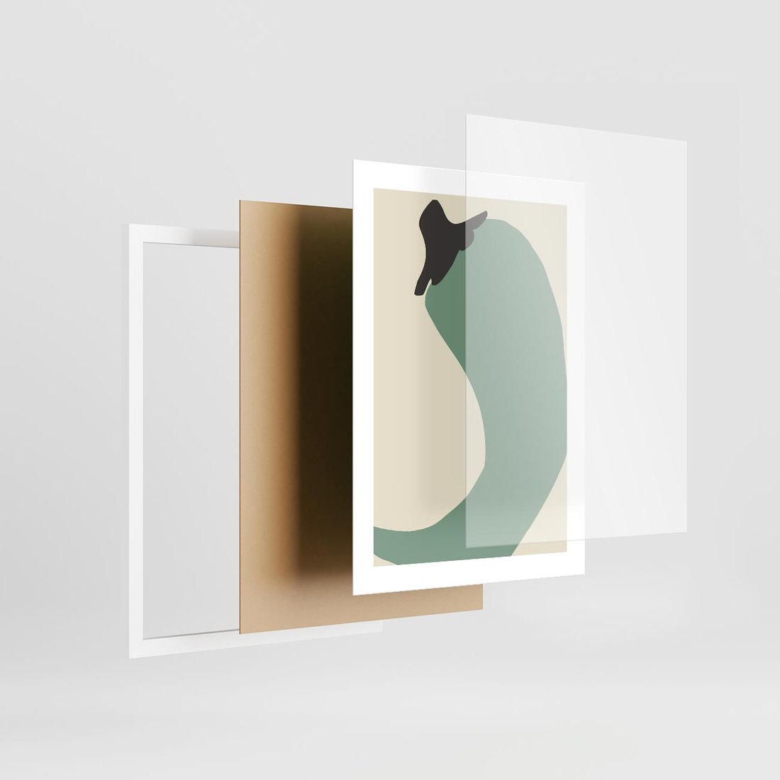 Plakat w ramie 30x40 - Granice Akwareli - abstrakcyjny minimalistyczny obraz, zielona papryczka - rama biała