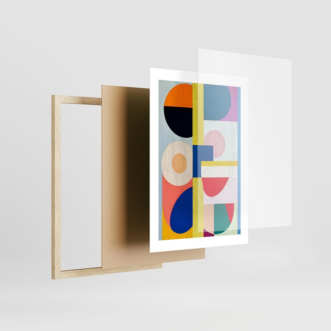 Plakat w ramie 30x40 - Harmonia Kolorowych Impulsów - abstrakcyjne geometryczne kształty, olejny obraz - rama drewno