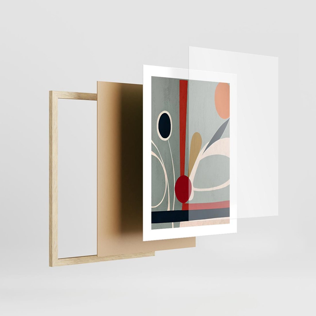 Plakat w ramie 30x40 - Harmonia Kolorowych Impulsów - abstrakcyjny obraz olejny, dziwne formy - rama drewno