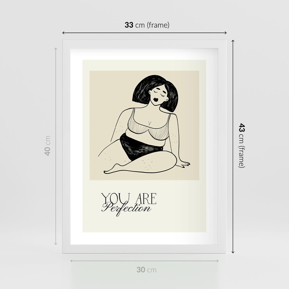 Plakat w ramie 30x40 - Harmonia Kształtów Bez Granic - siła kobiecości, rysunek - rama biała