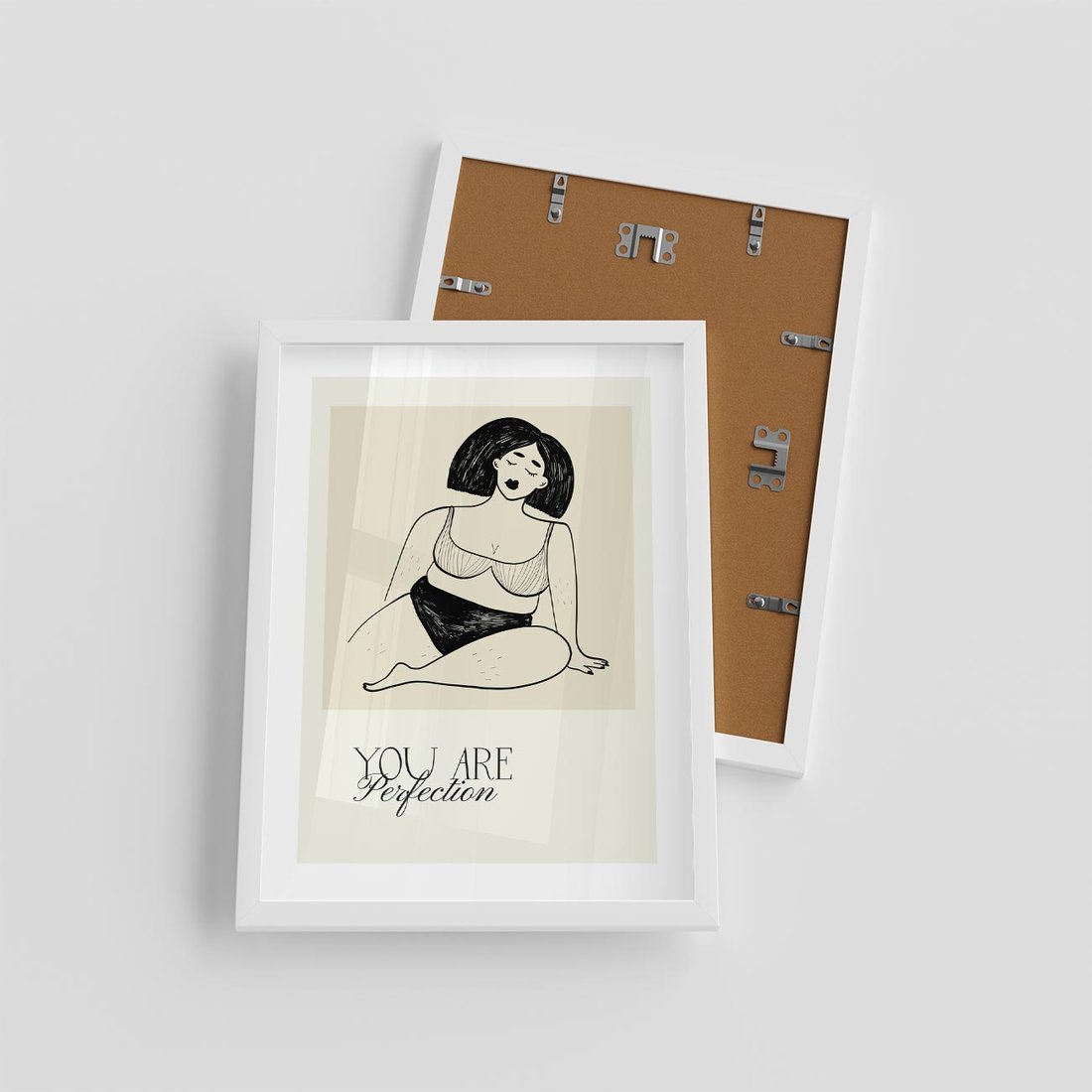 Ten plakat oddaje siłę kobiecej natury poprzez delikatny rysunek kobiety w bieliźnie. W połączeniu z mocną typografią, wyraża niezłomną pewność siebie i wyjątkowość kobiet.