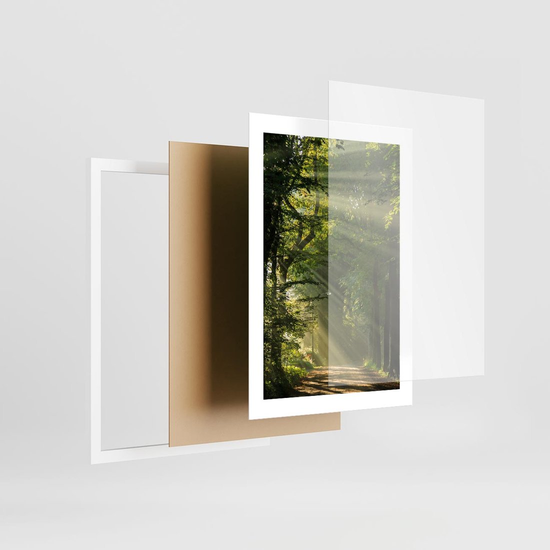 Plakat w ramie 30x40 - harmonia natury - las, drzewa - rama biała