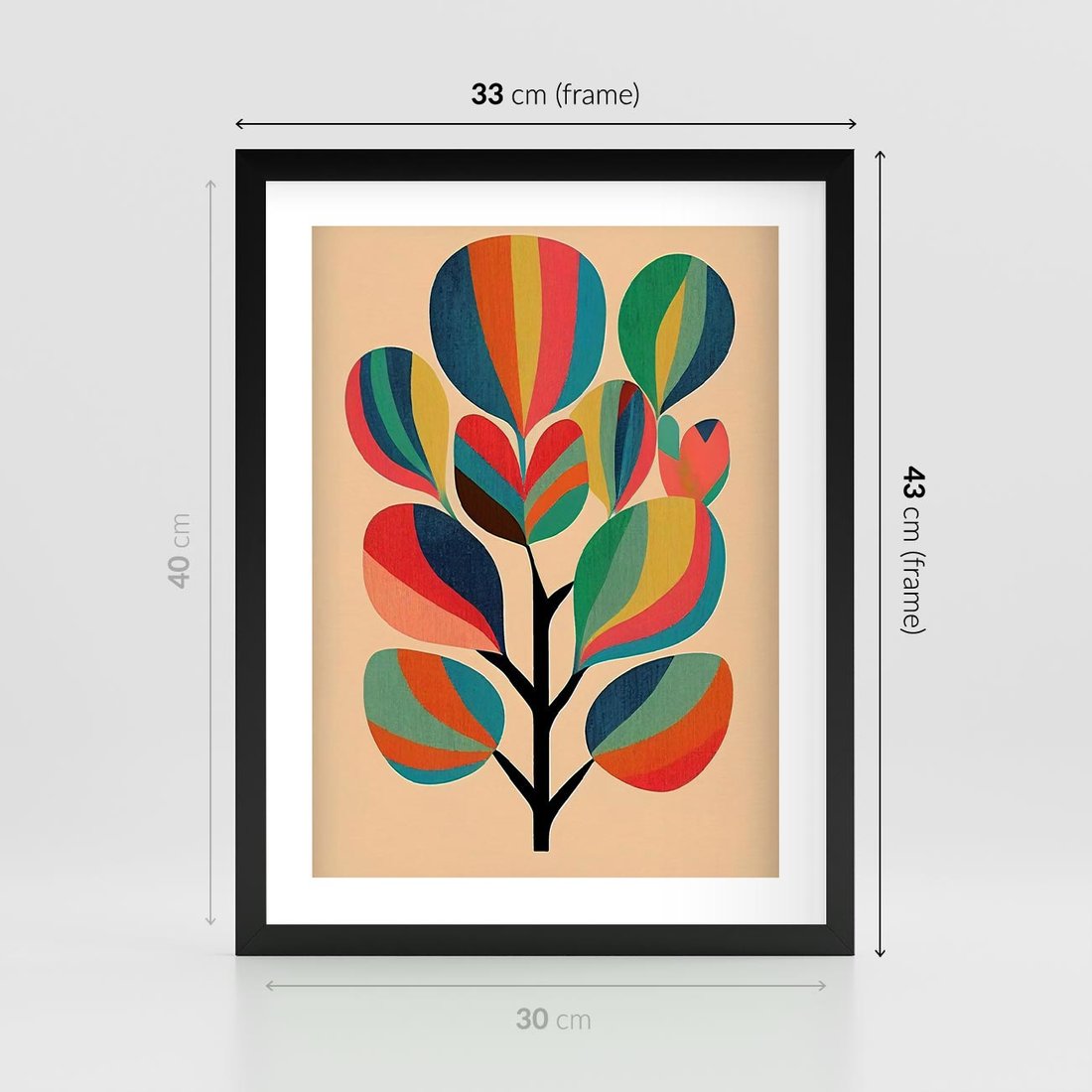 Plakat w ramie 30x40 - Harmonia Rozplątanych Form - abstrakcyjny kolorowy tęczowy obraz, inspiracje roślinne - rama czarna