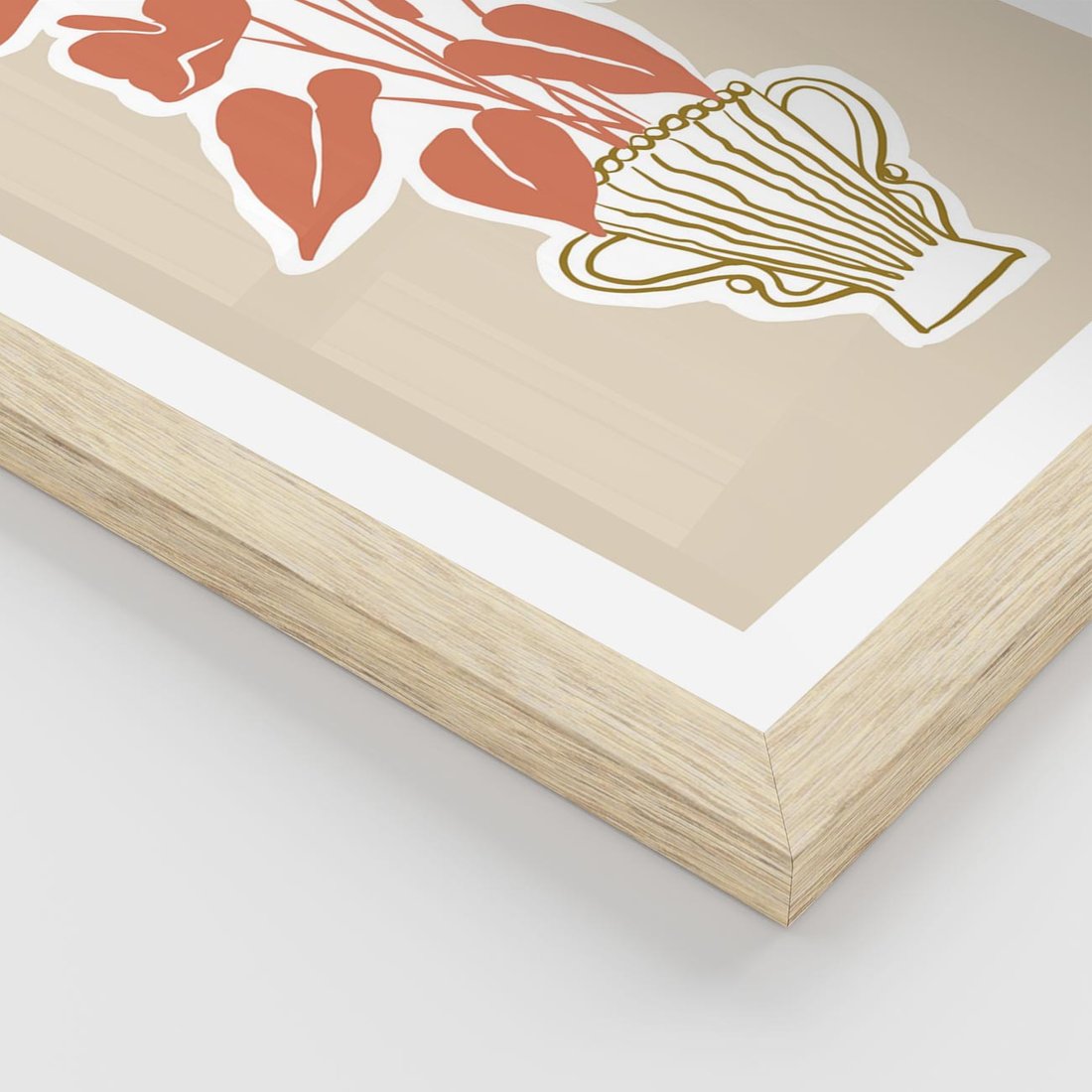 Plakat w ramie 30x40 - Harmonijne Echa - abstrakcyjne kwiaty liście, elegancka kompozycja - rama drewno
