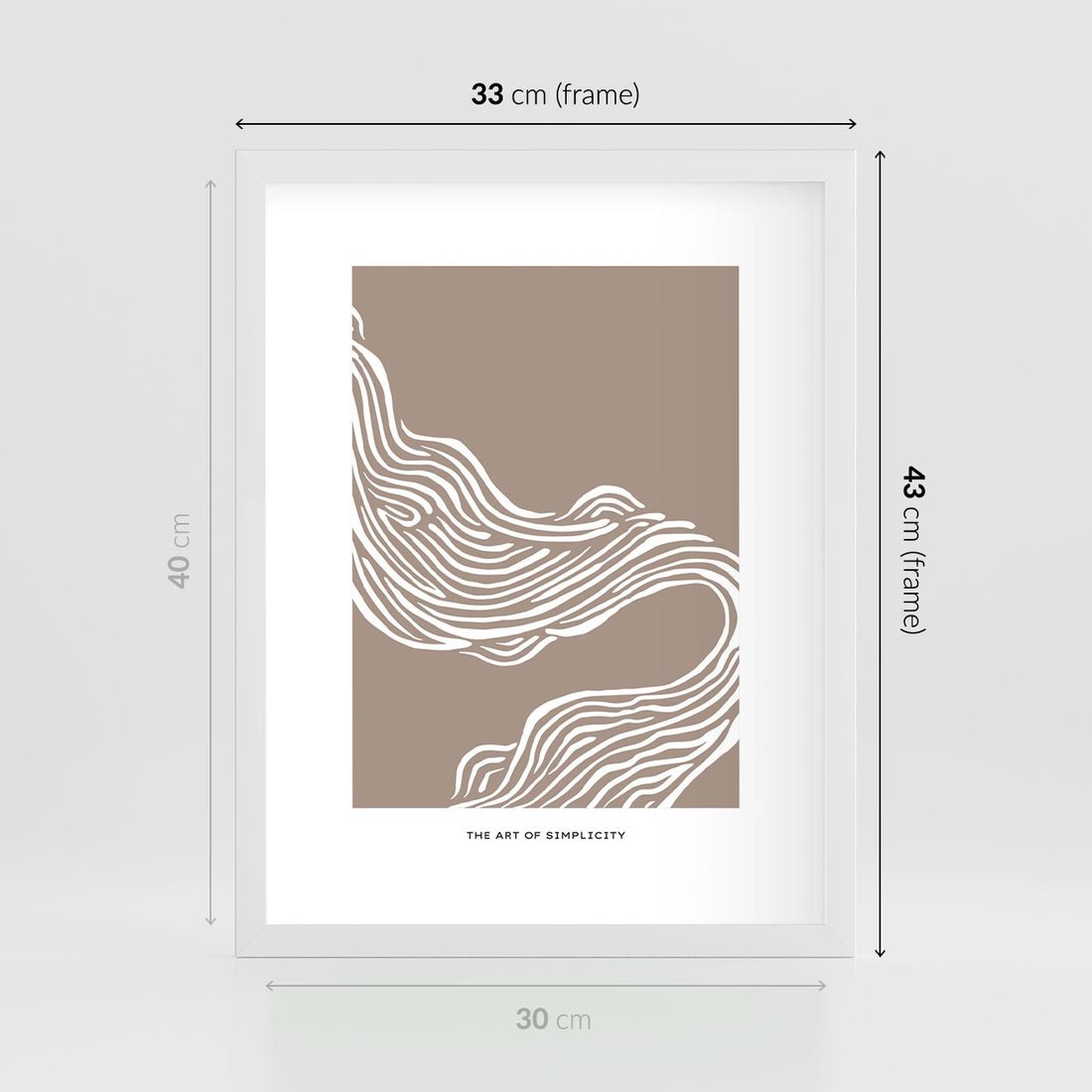 Plakat w ramie 30x40 - Harmonijne Granice - sztuka minimalizmu, biała rycina - rama biała