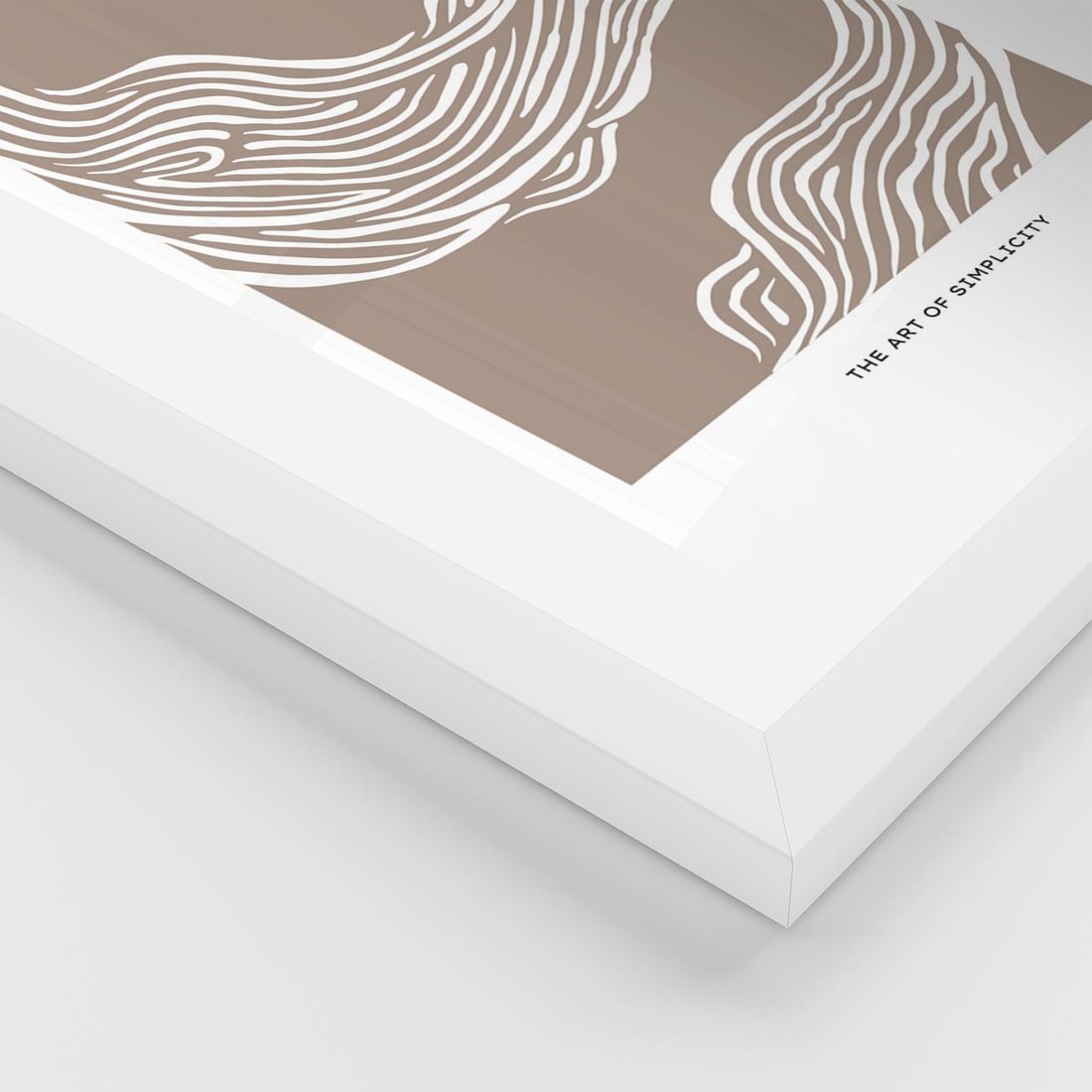 Ta sztuka minimalizmu w postaci białej ryciny na subtelnie beżowo-brązowym tle jest hołdem dla prostoty i elegancji. Wykorzystując najbardziej podstawowe elementy, tworzy spokojną i harmonijną atmosferę, która pobudza do refleksji i kontemplacji. To zaproszenie do odkrywania piękna w jego najbardziej minimalistycznej formie.