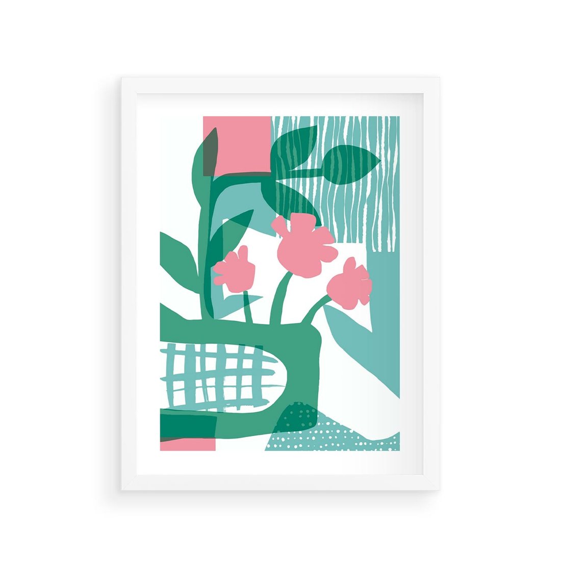 Plakat w ramie 30x40 - Harmonijne Plamy - abstrakcyjne pastelowe kwiaty, nowoczesna sztuka - rama biała