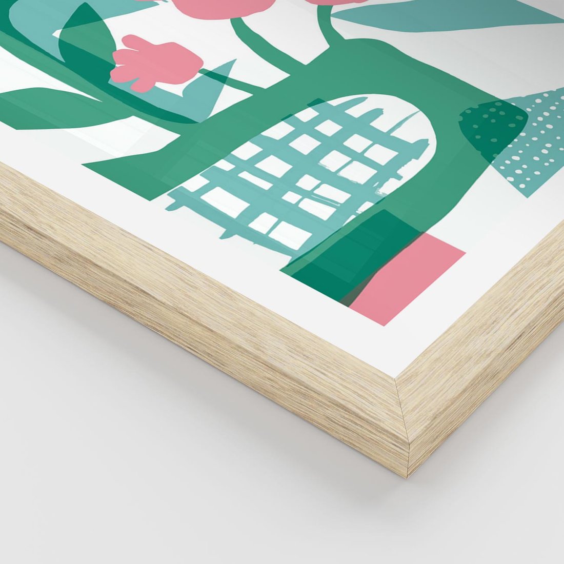 Plakat w ramie 30x40 - Harmonijne Plamy - abstrakcyjne pastelowe kwiaty, nowoczesna sztuka - rama drewno