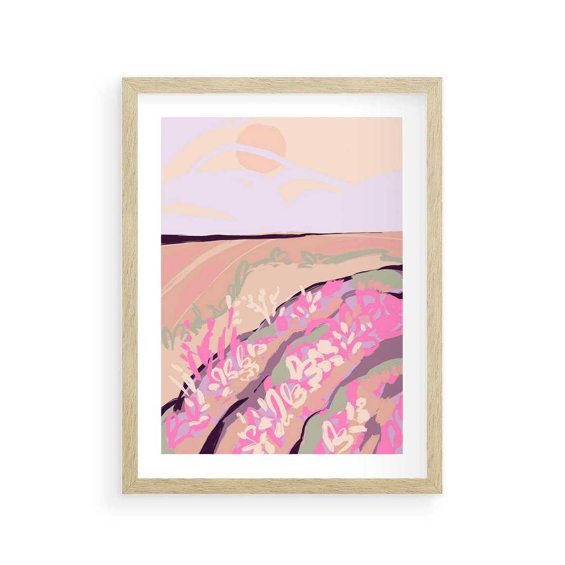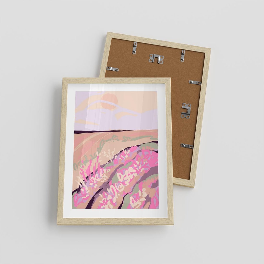 Ten nowoczesny plakat przedstawia pastelowy krajobraz z odcieniami różu, które przypominają romantyczny wschód słońca. To dzieło sztuki wnosi do Twojej przestrzeni spokój i harmonię, jednocześnie zachowując nowoczesny charakter. Idealny wybór dla tych, którzy cenią piękno natury i delikatne odcienie.