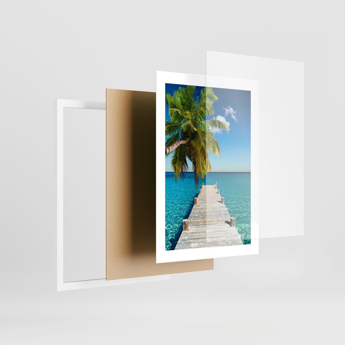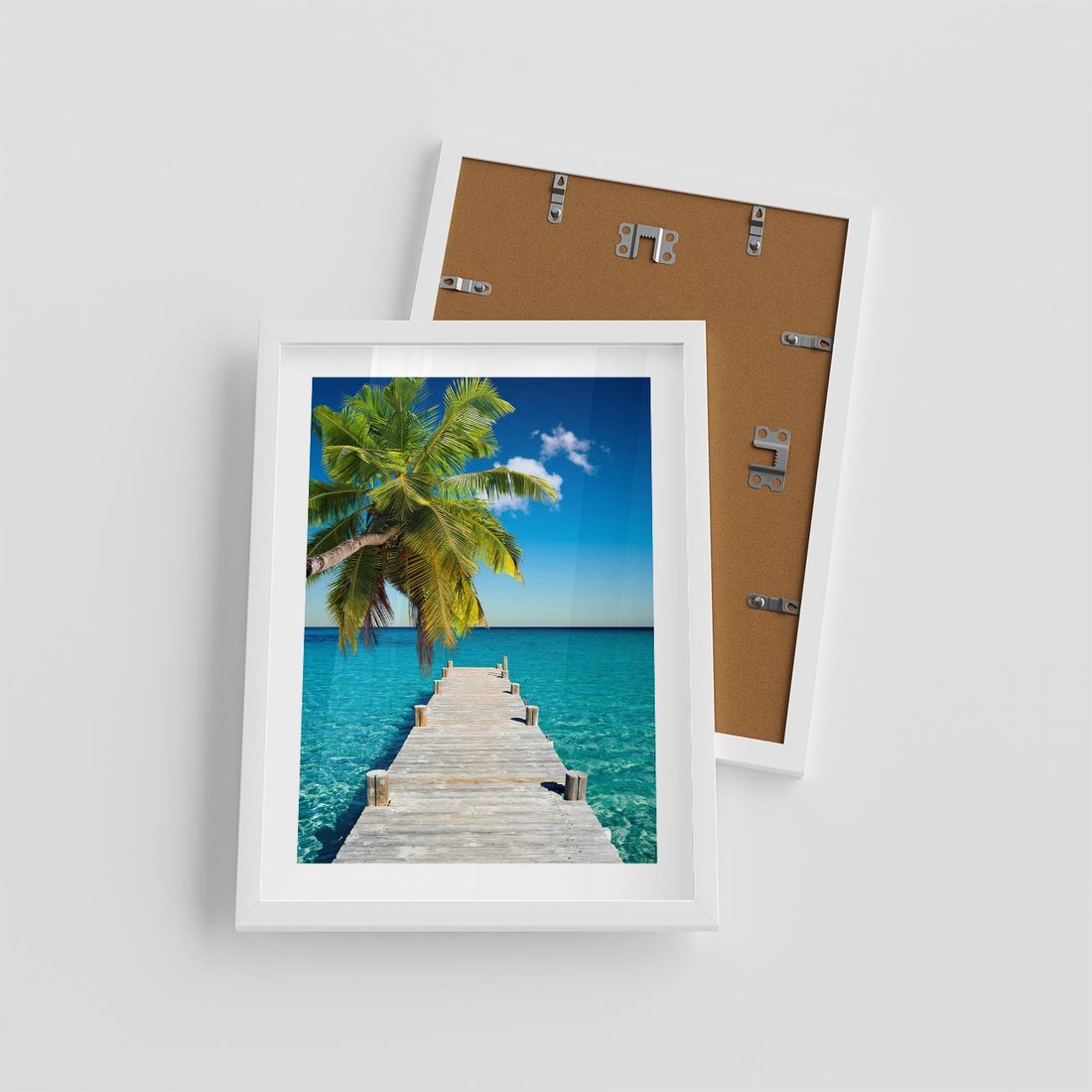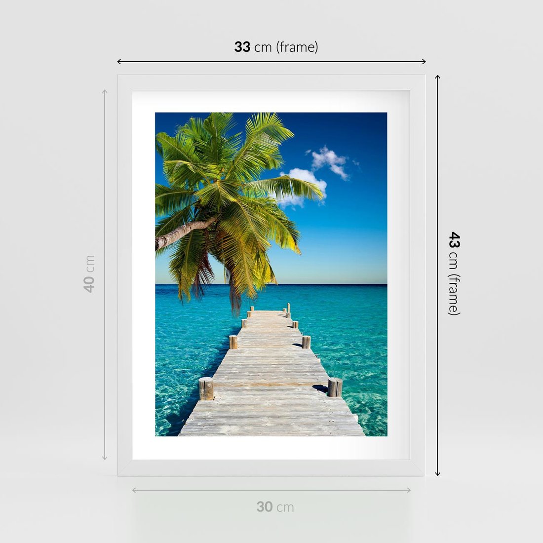 Plakat w ramie 30x40 - Hawajskie Palmy - palma, morze - rama biała