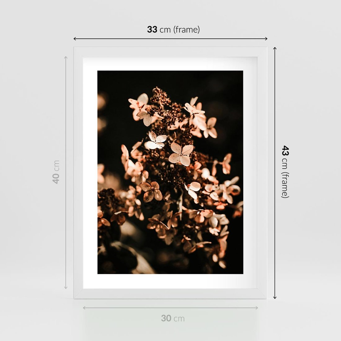 Plakat w ramie 30x40 - Hortensja - Suchy Kwiat w Sztuce - hortensja, suchy kwiat - rama biała
