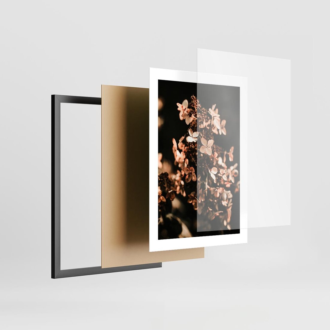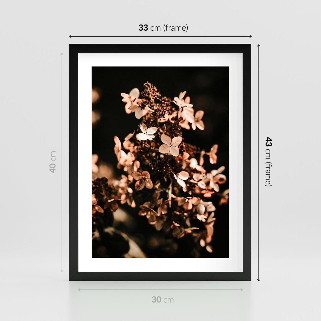 Plakat w ramie 30x40 - Hortensja - Suchy Kwiat w Sztuce - hortensja, suchy kwiat - rama czarna