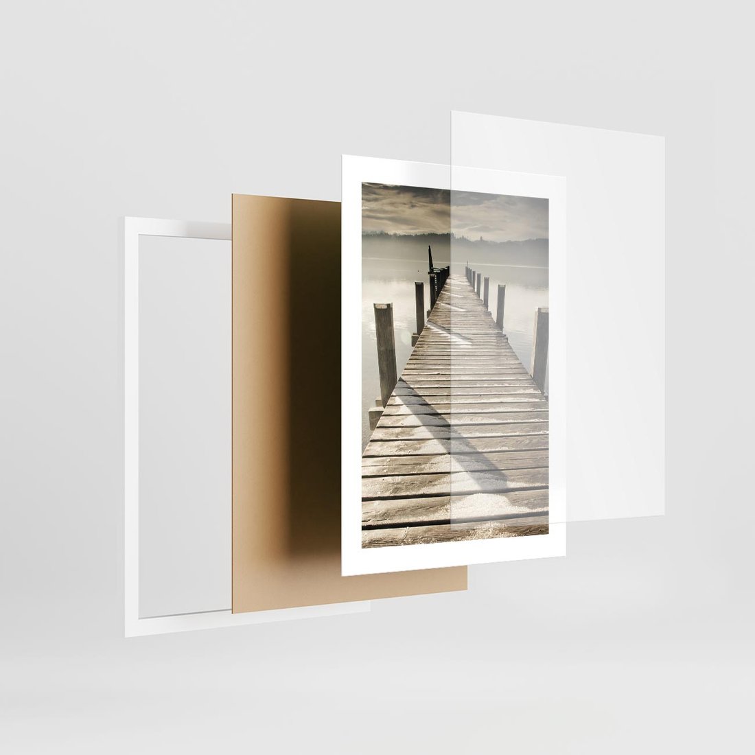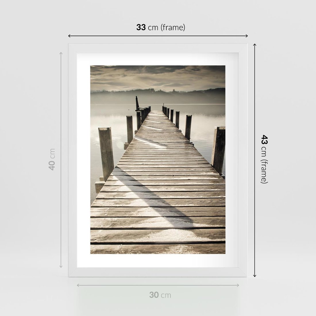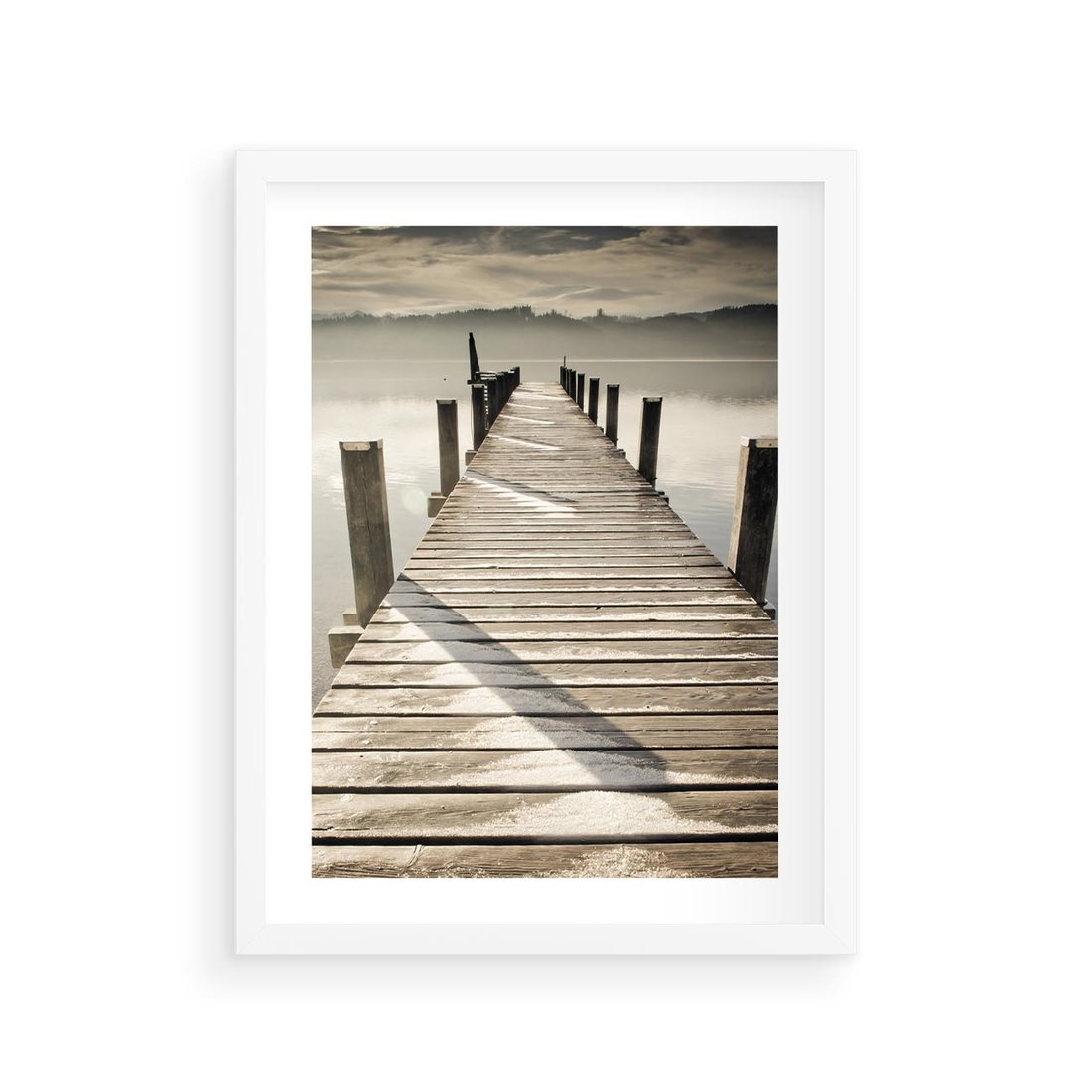 Plakat w ramie 30x40 - Idylliczny pomost nad jeziorem - pomost, jezioro - rama biała