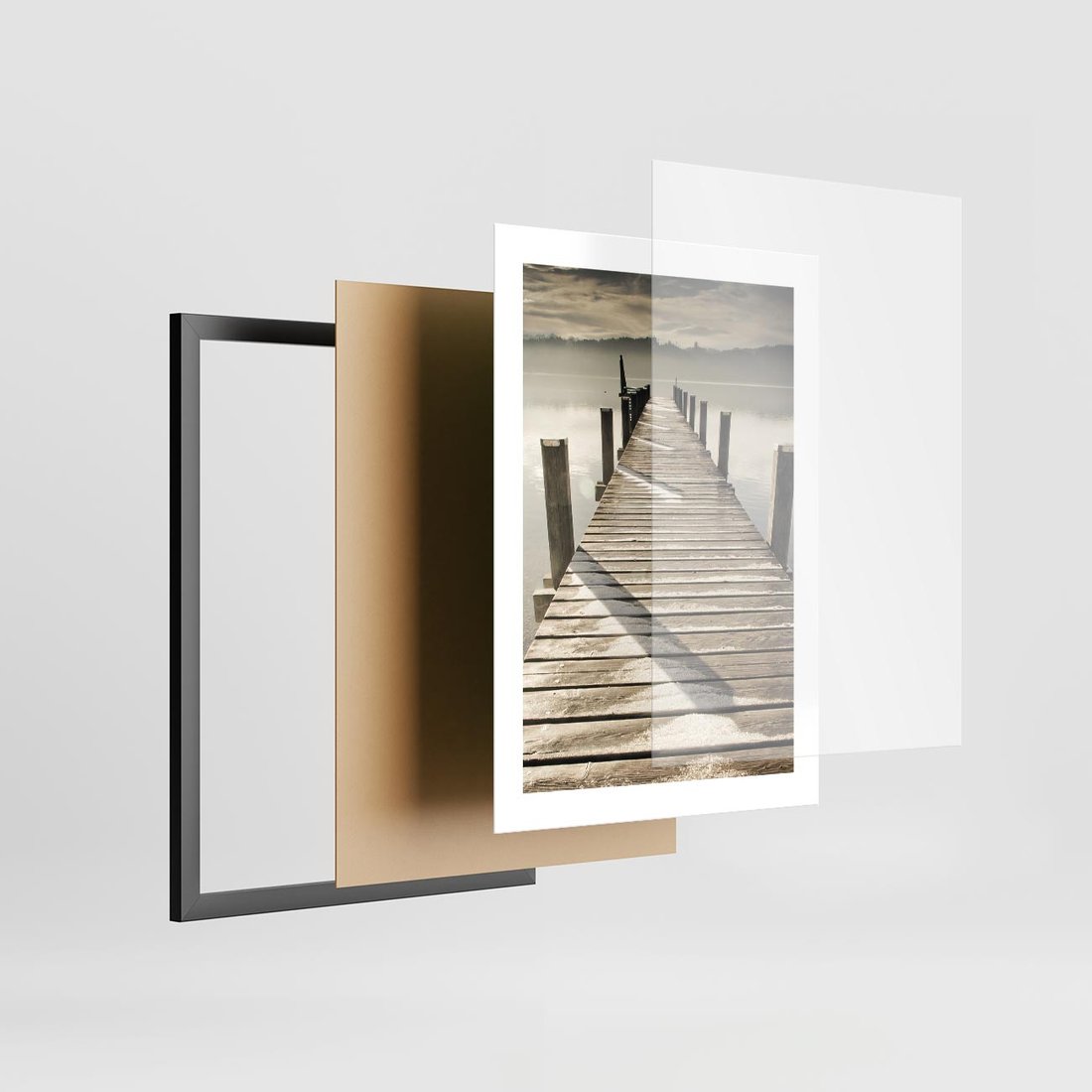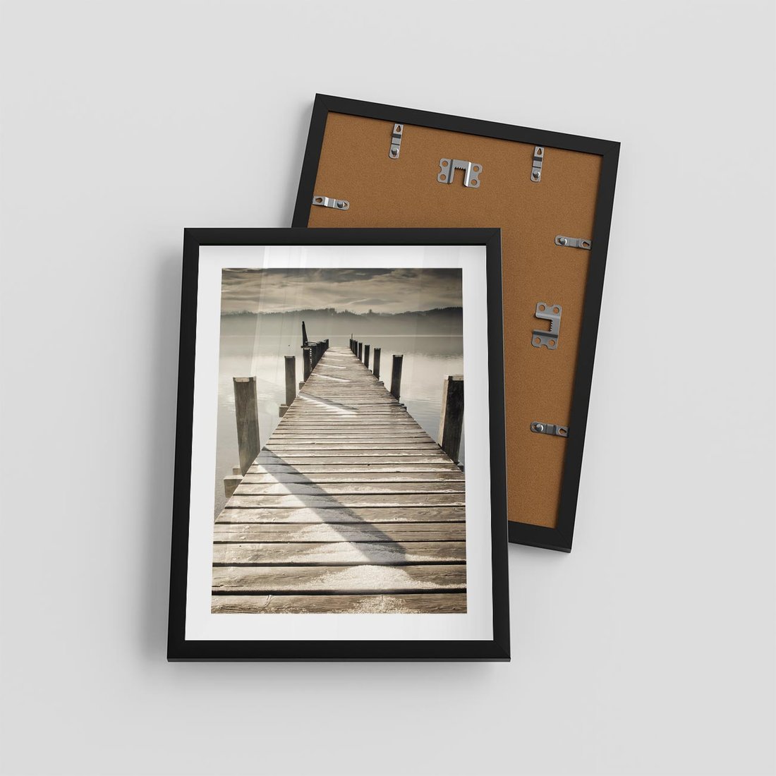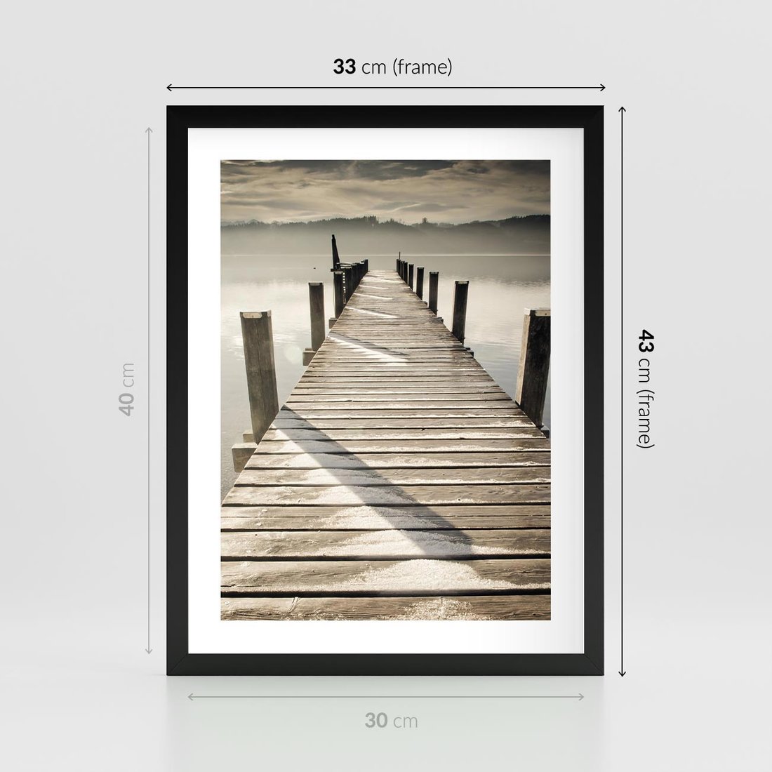 Plakat w ramie 30x40 - Idylliczny pomost nad jeziorem - pomost, jezioro - rama czarna