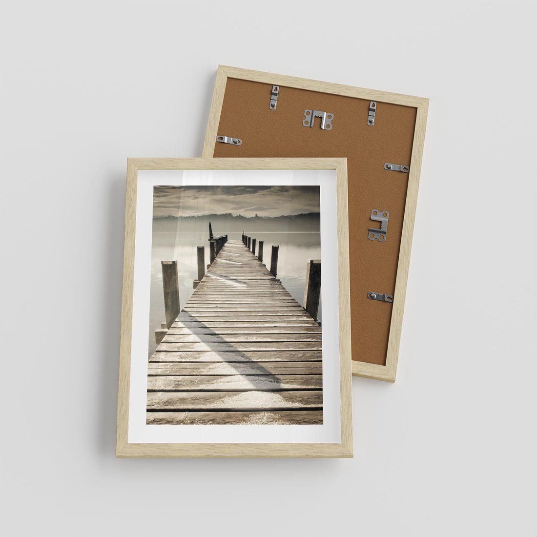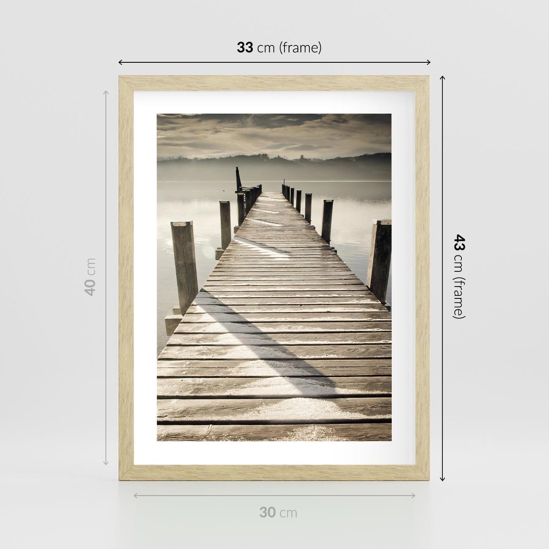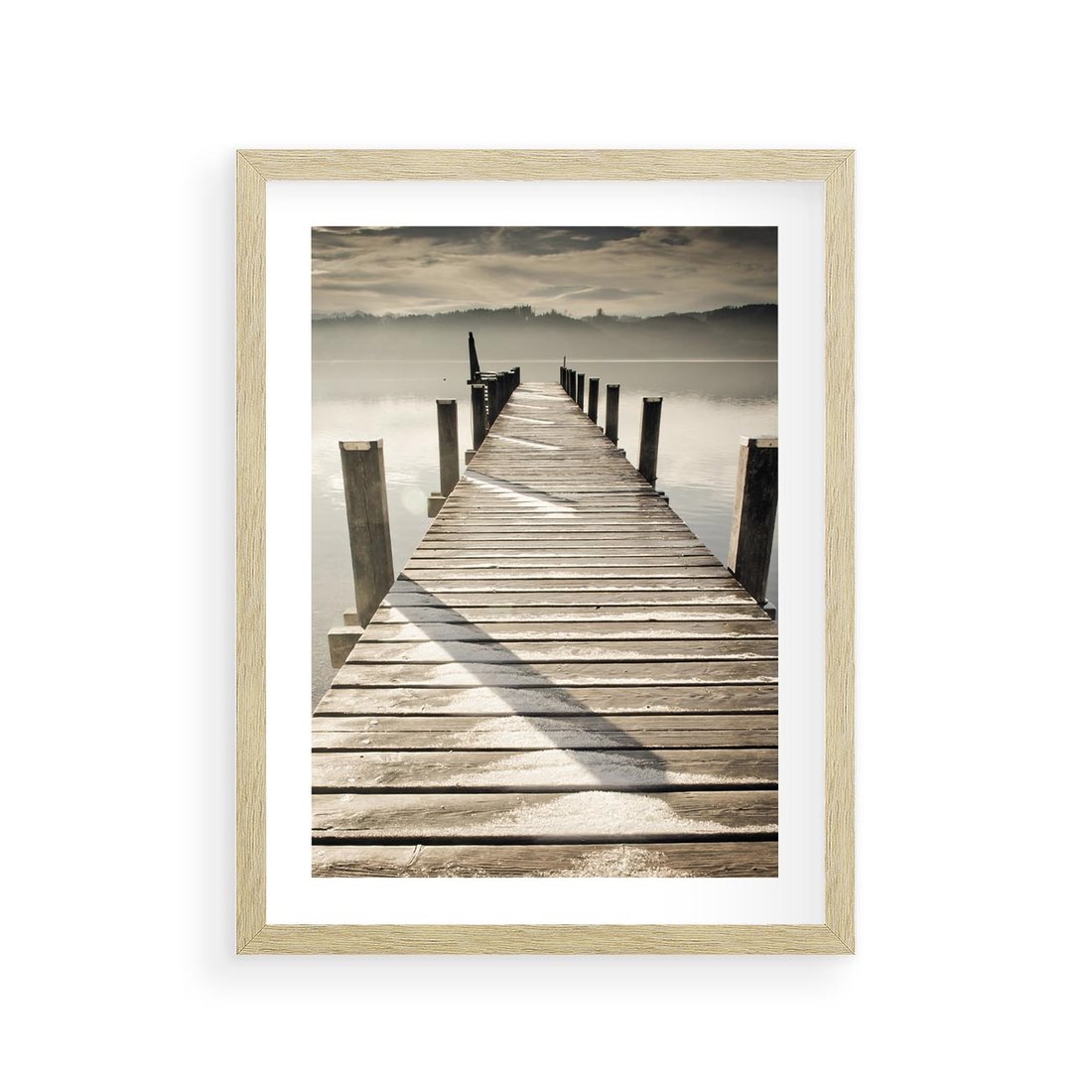 Plakat w ramie 30x40 - Idylliczny pomost nad jeziorem - pomost, jezioro - rama drewno