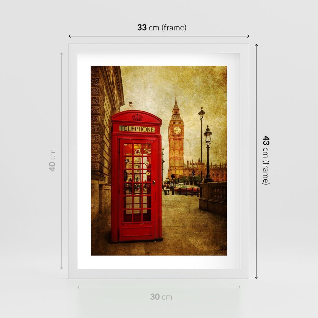 • Plakat w ramie 30x40 - Ikoniczna budka telefoniczna w Londynie