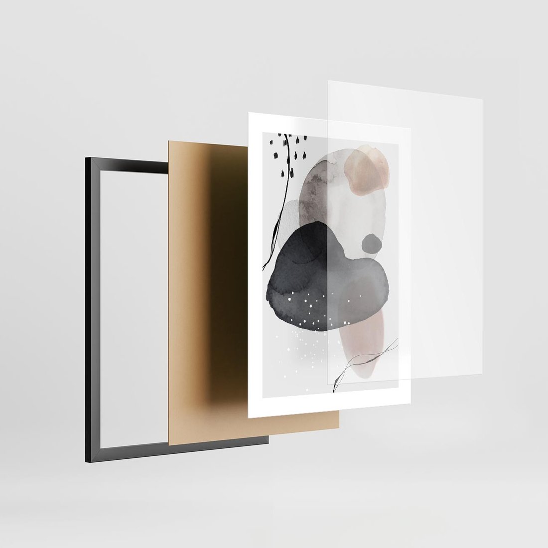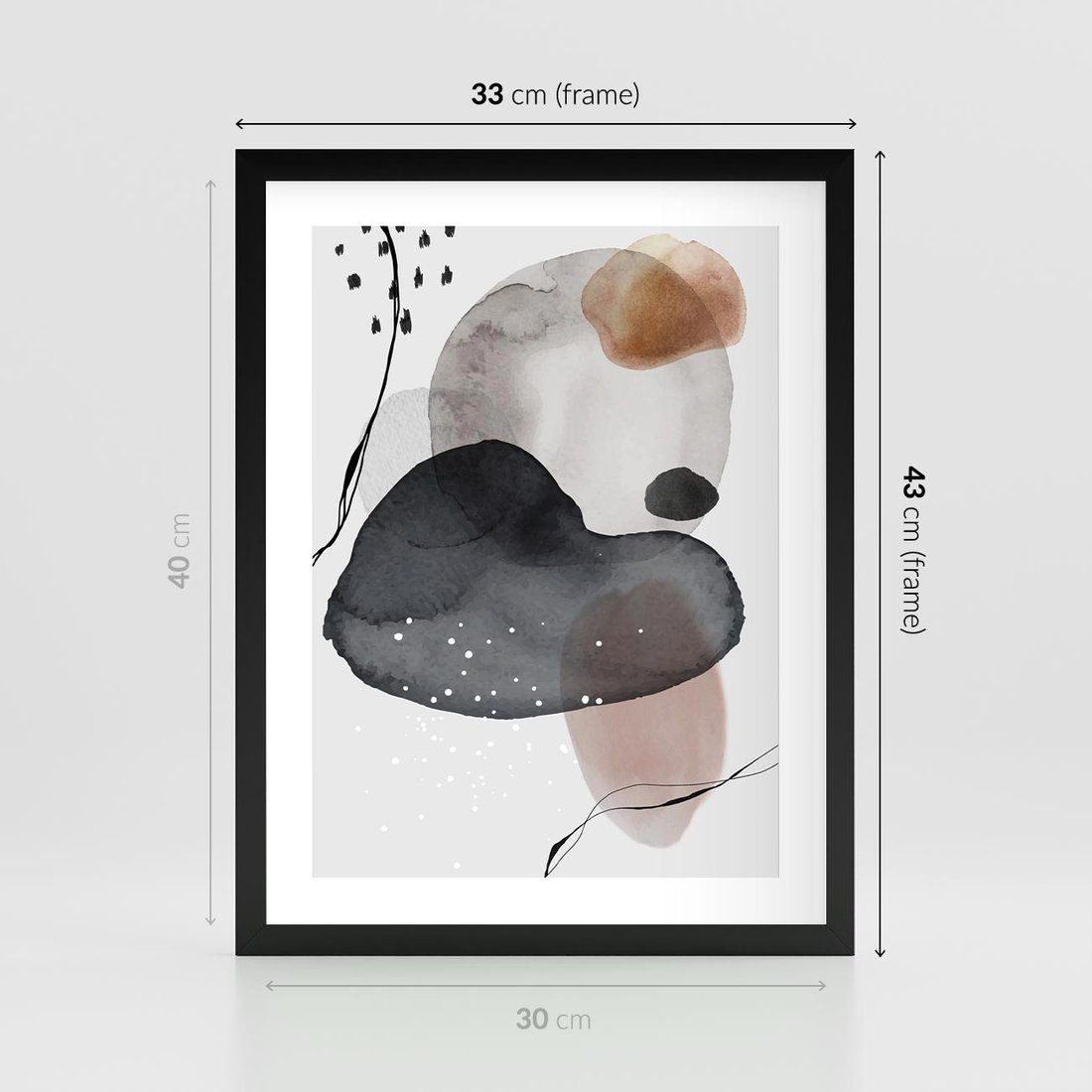 Plakat w ramie 30x40 - Impresje Harmonii - abstrakcyjne plamy akwarelowe, czarny szkic - rama czarna