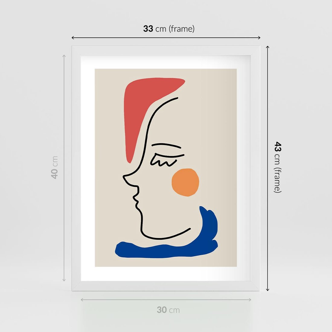 Plakat w ramie 30x40 - Impresje Kształtów - abstrakcyjny obraz, przypomina twarz - rama biała